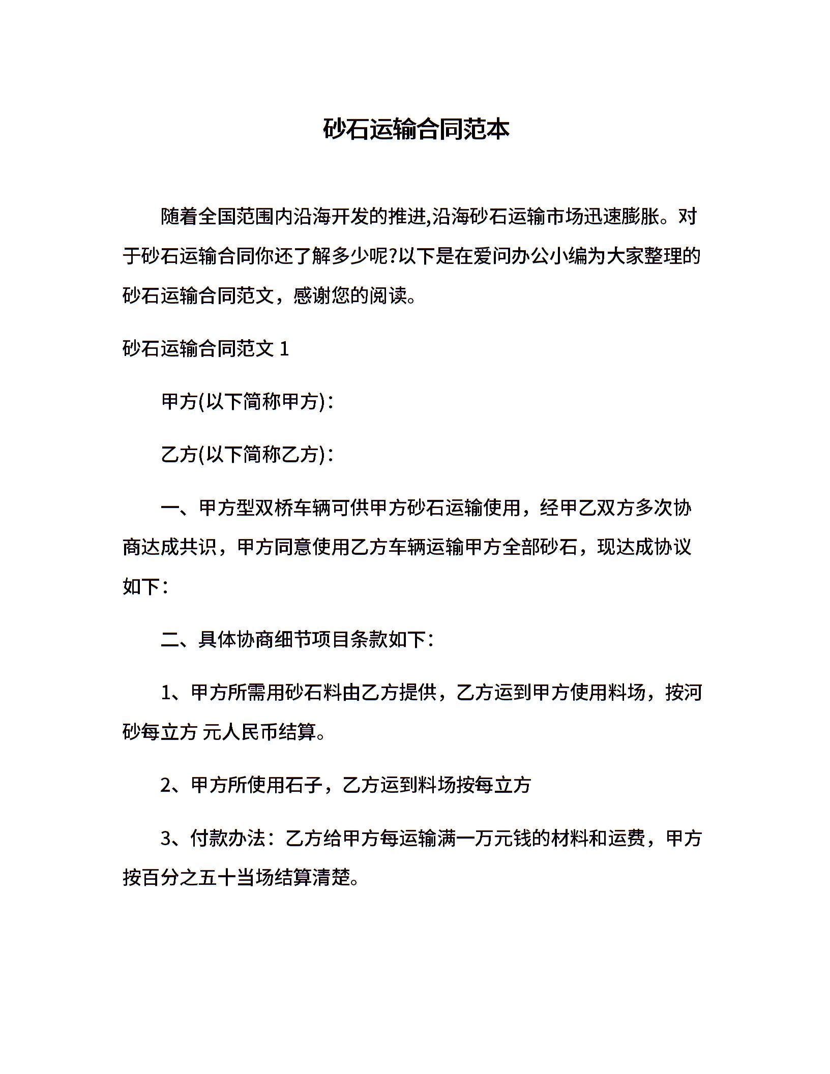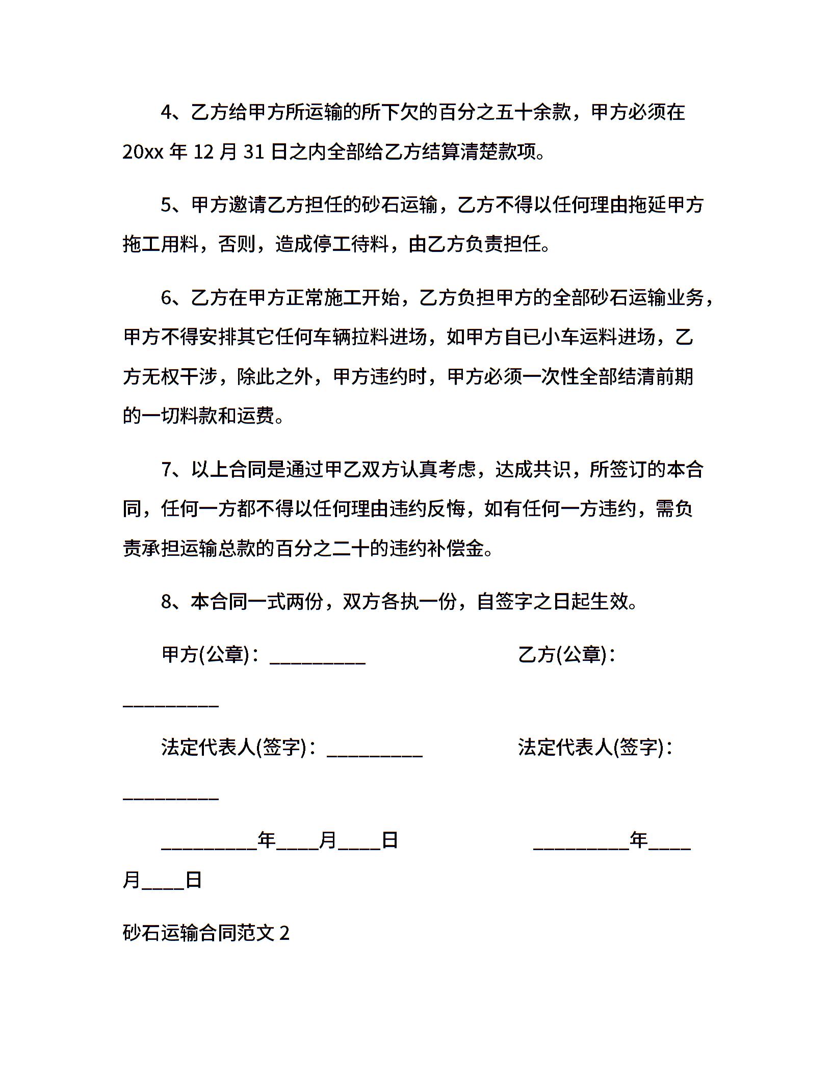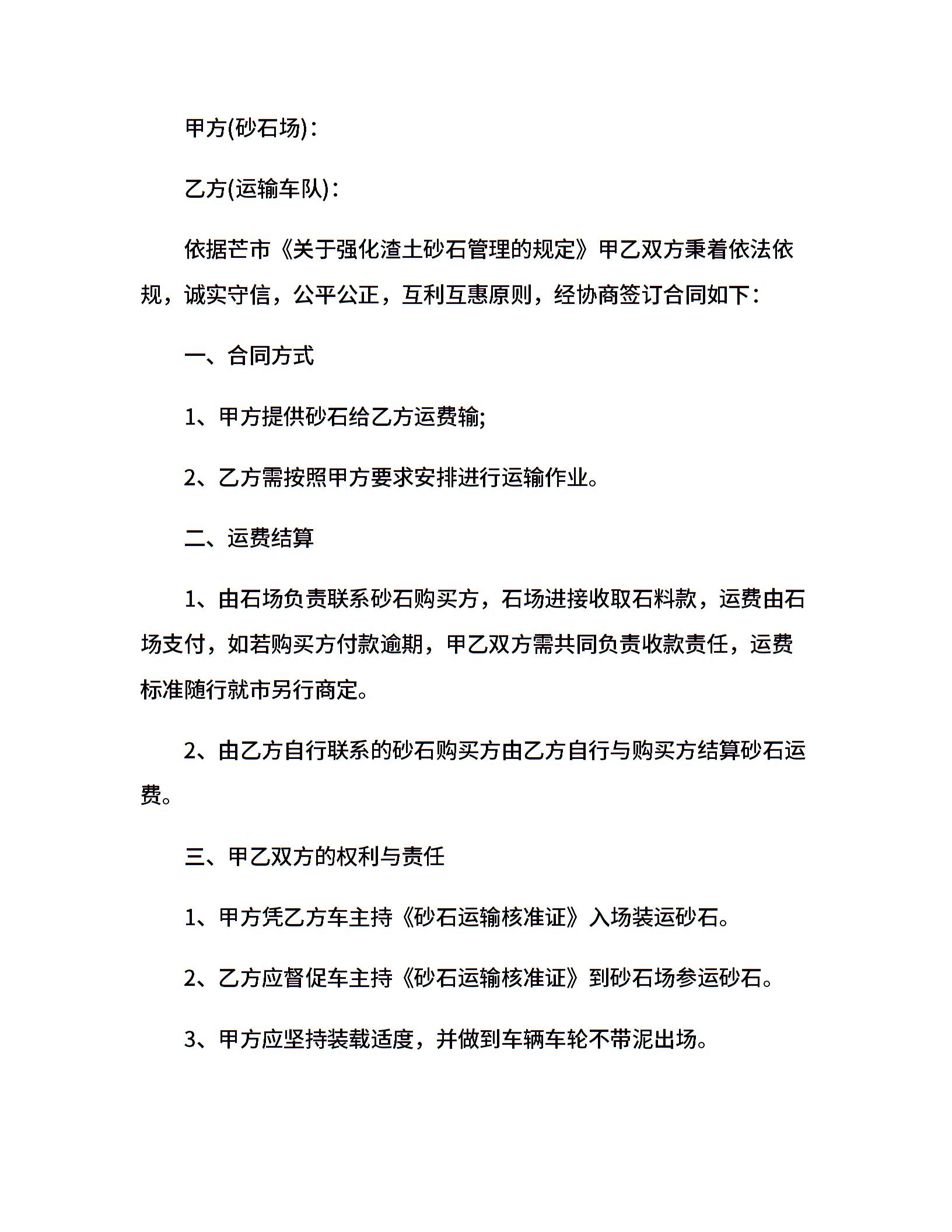 砂石运输合同范本