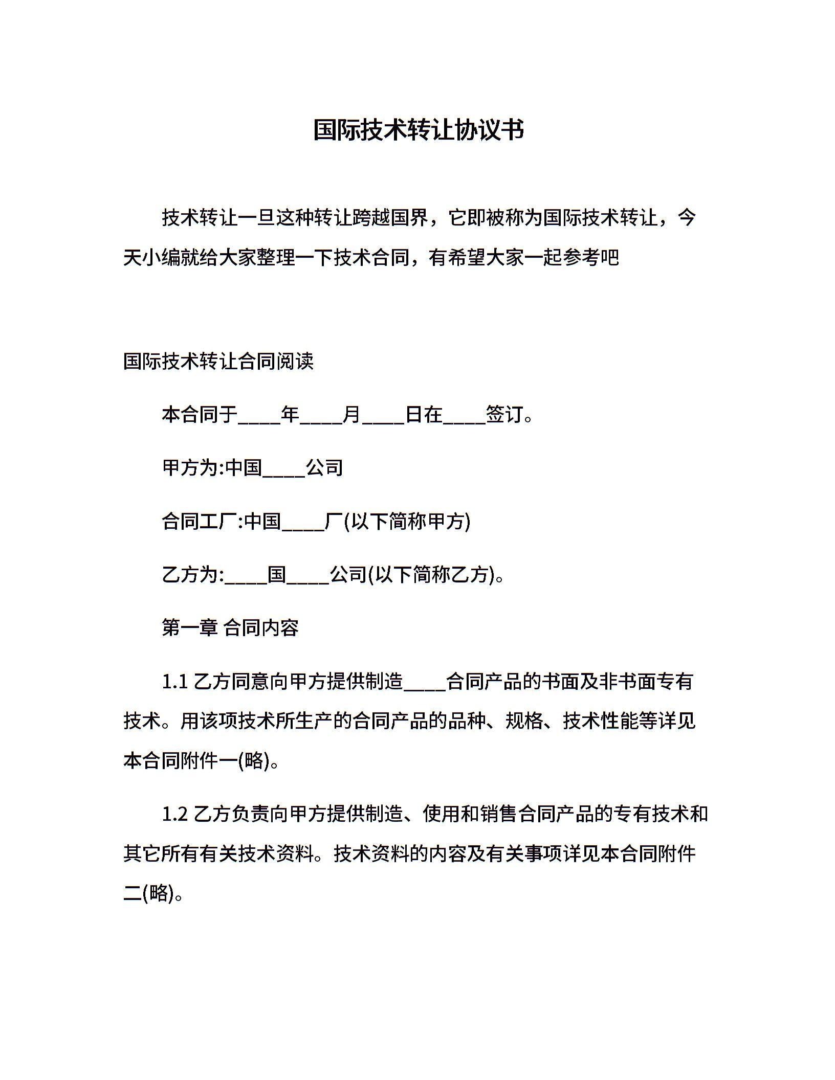 国际技术转让协议书
