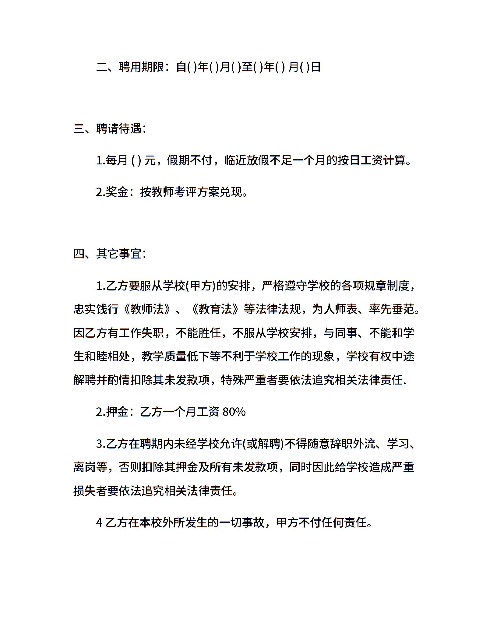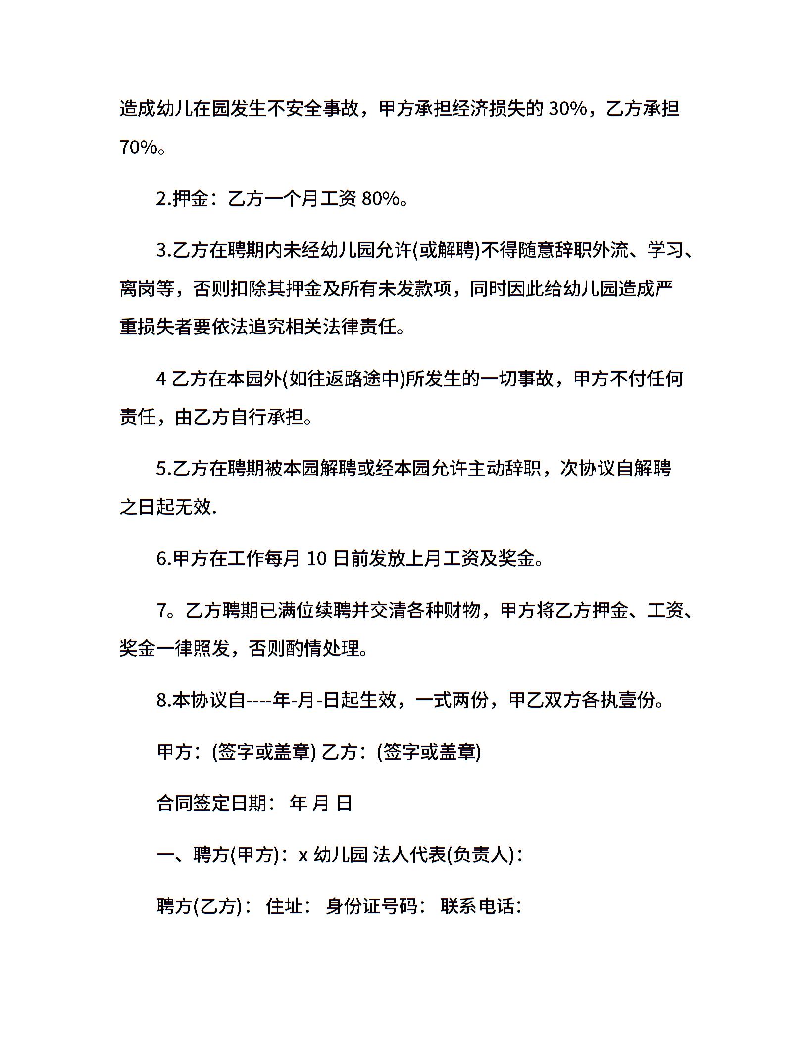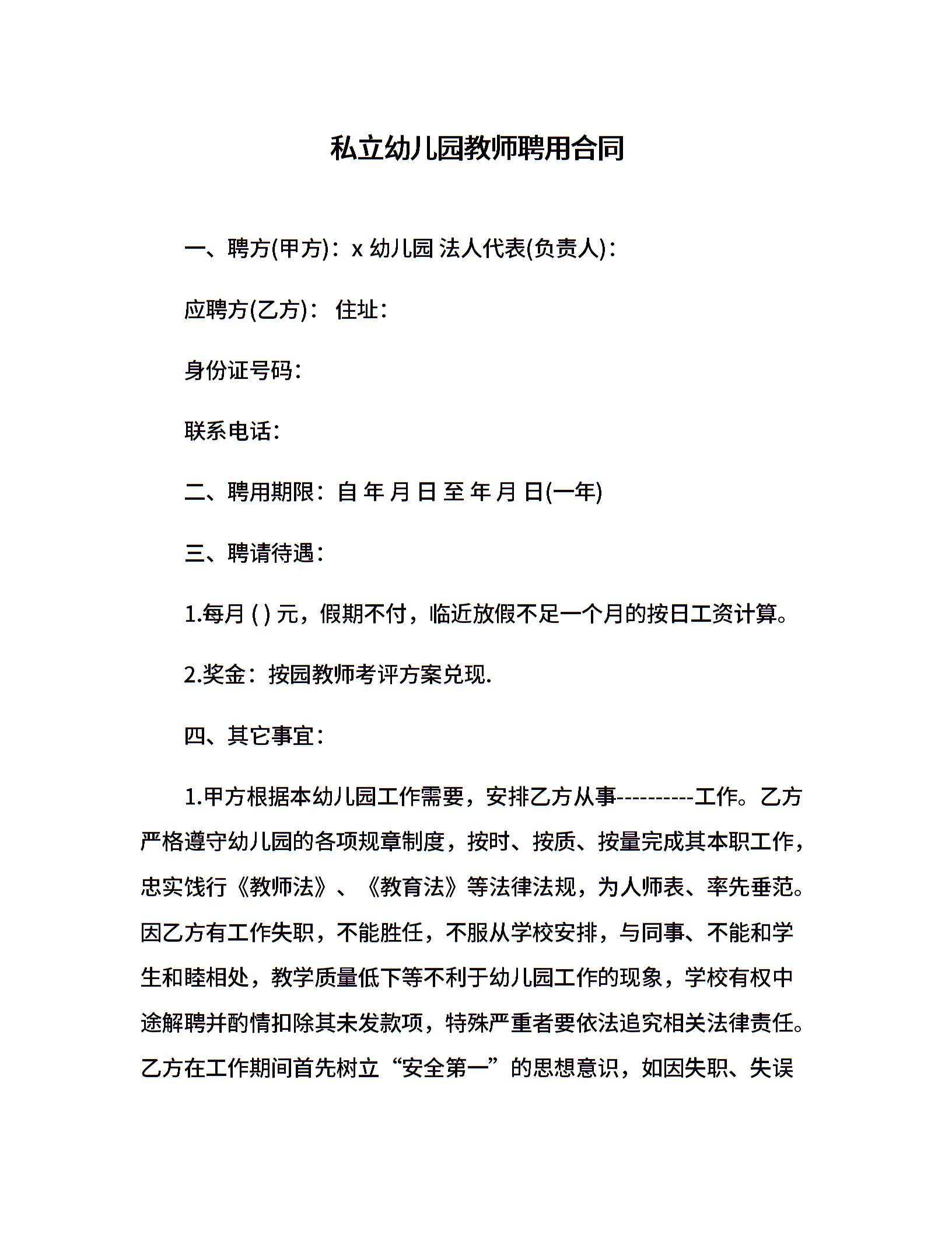 私立幼儿园教师聘用合同