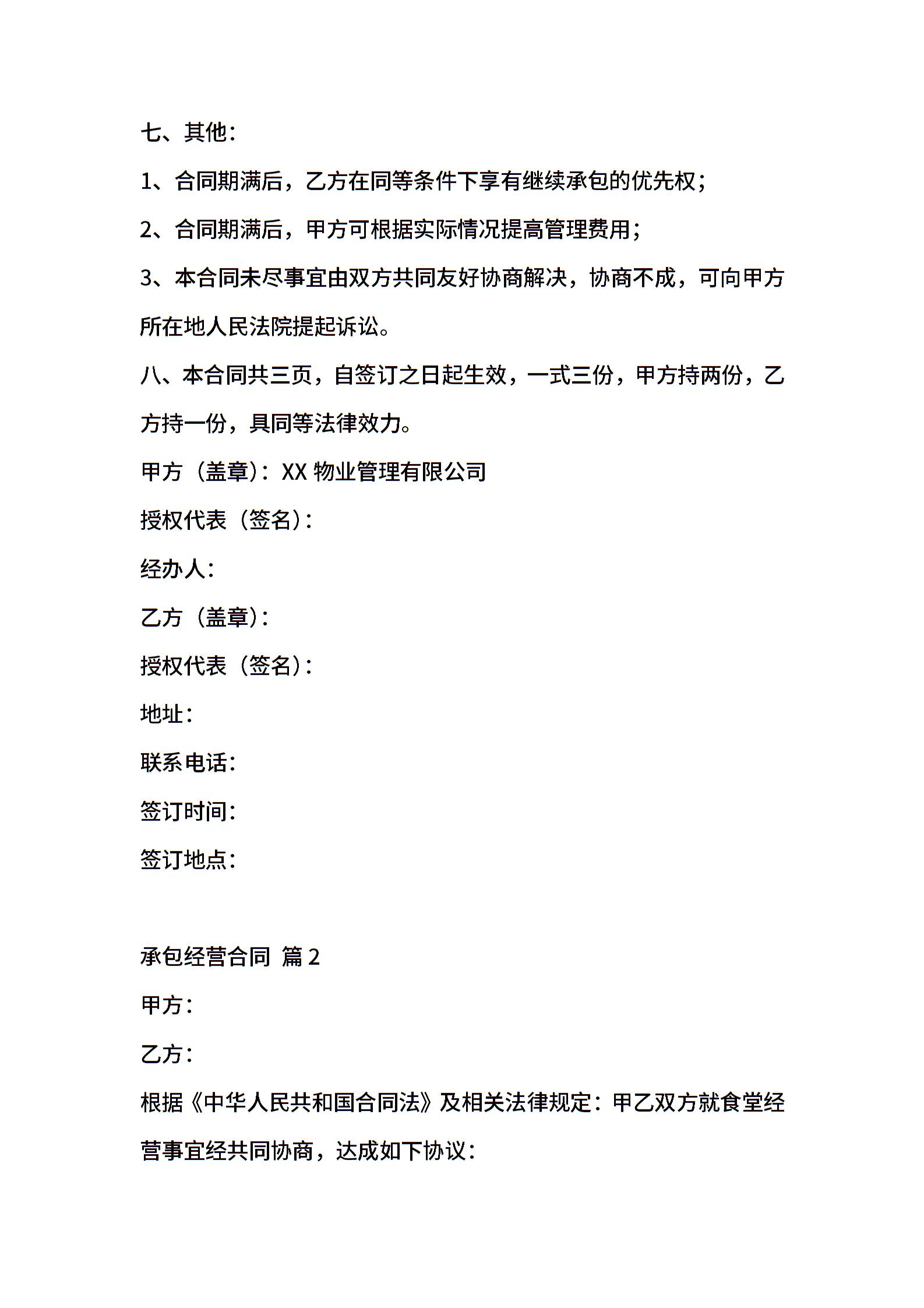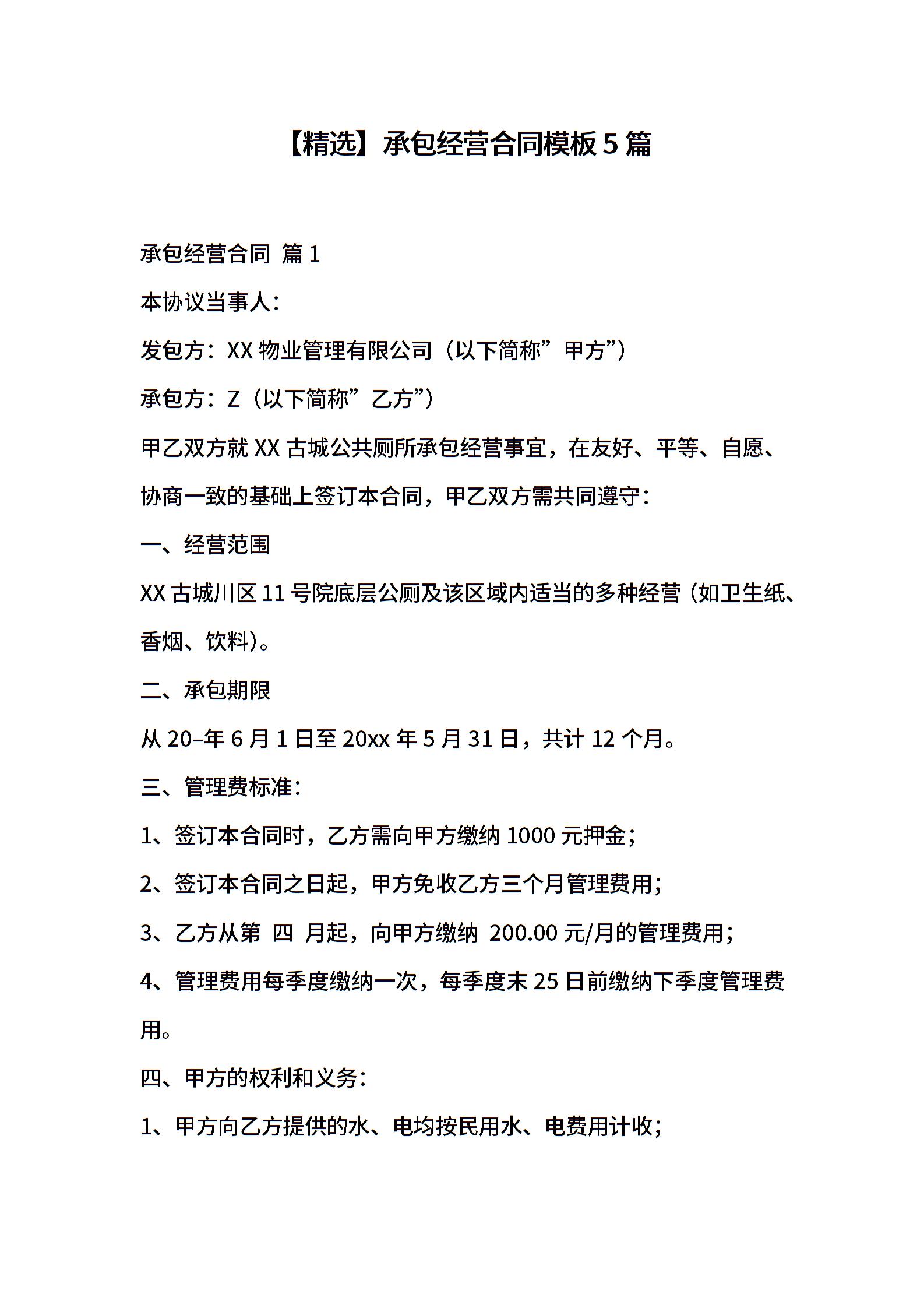 承包经营合同模板5篇