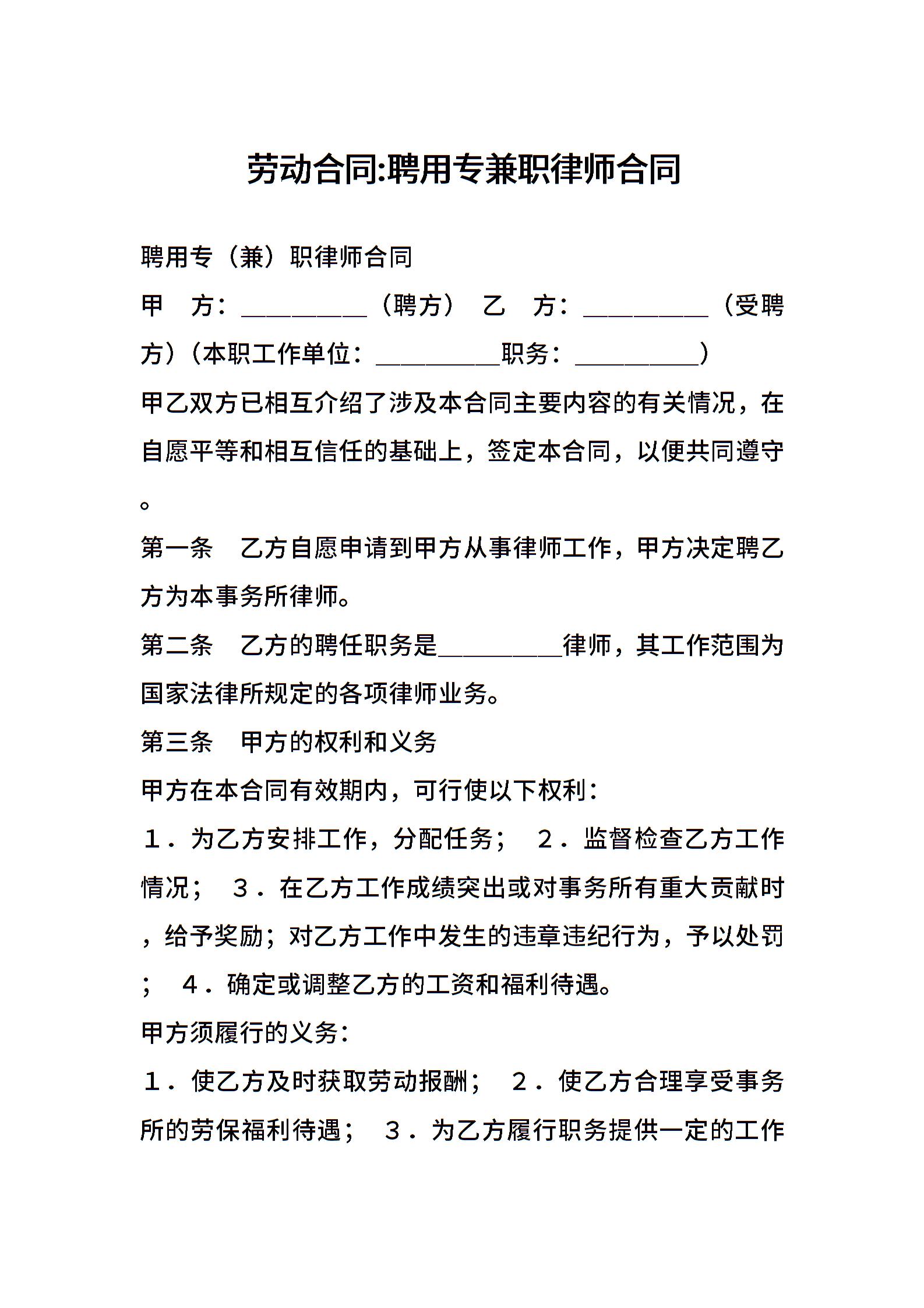 劳动合同-聘用专兼职律师合同