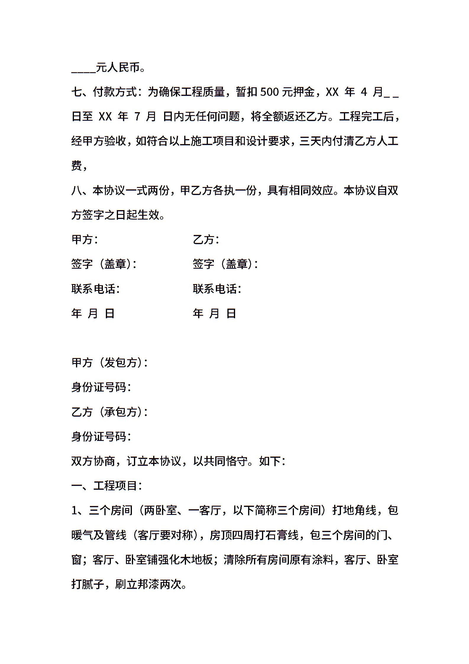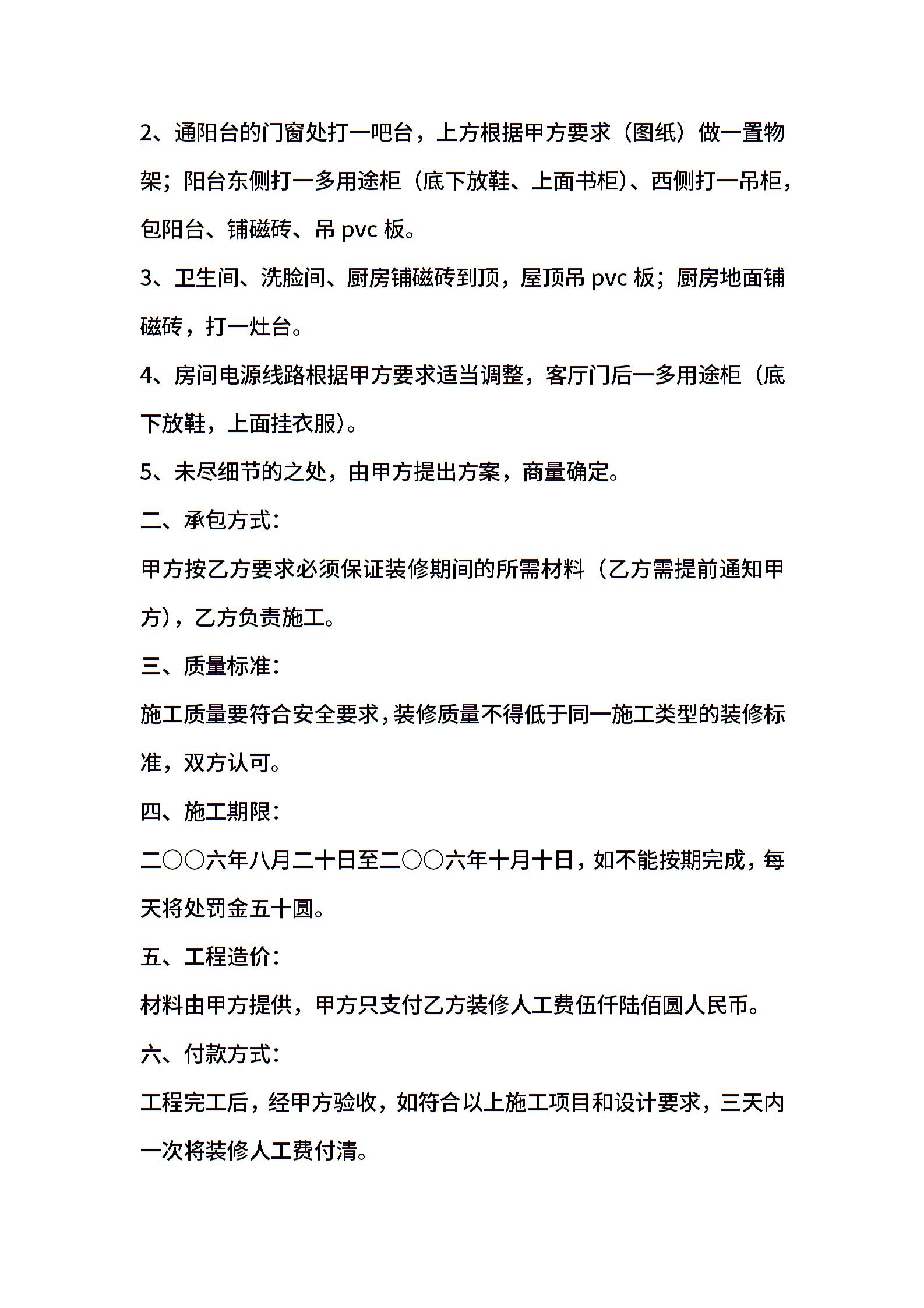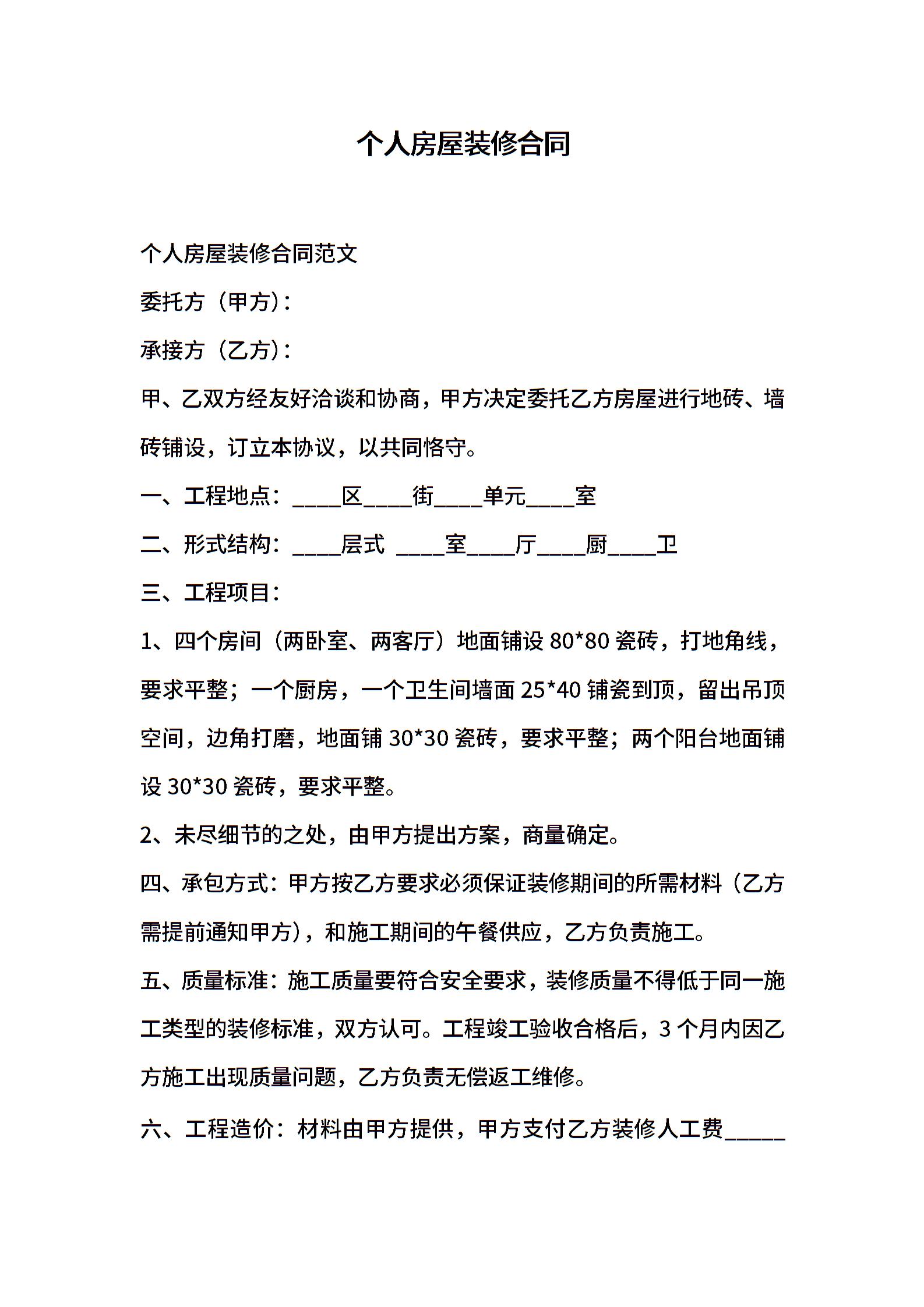 个人房屋装修合同