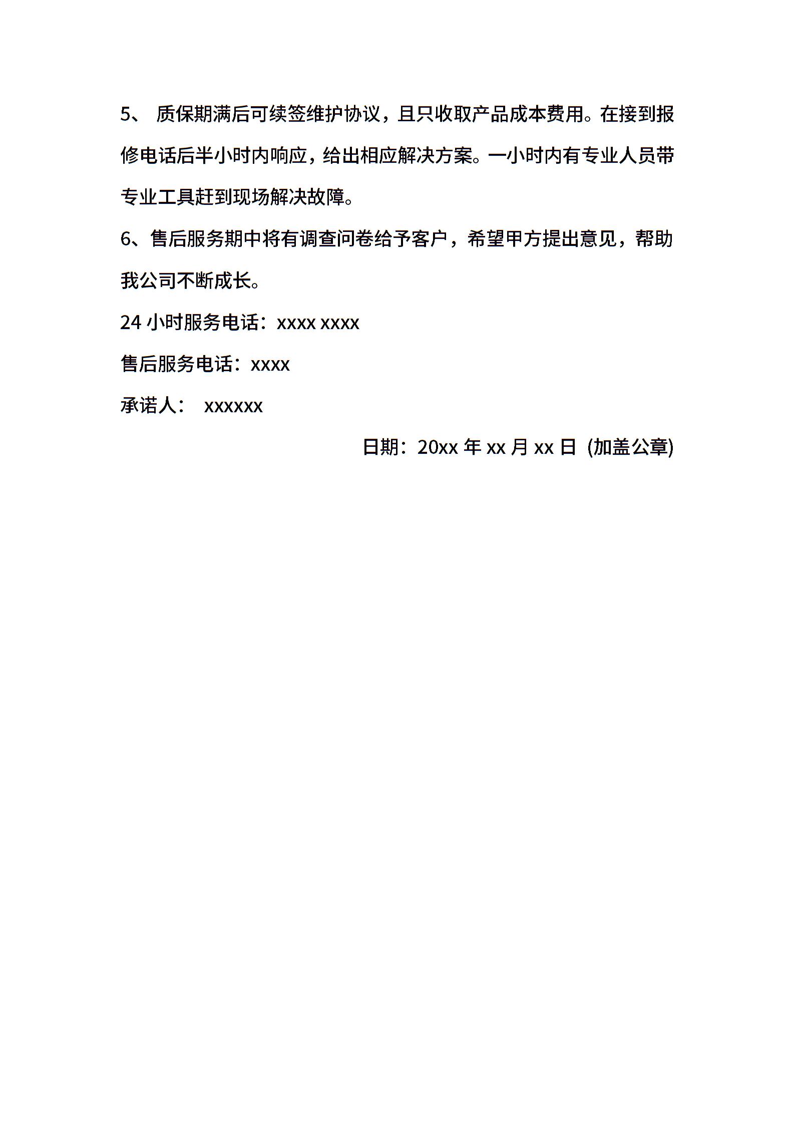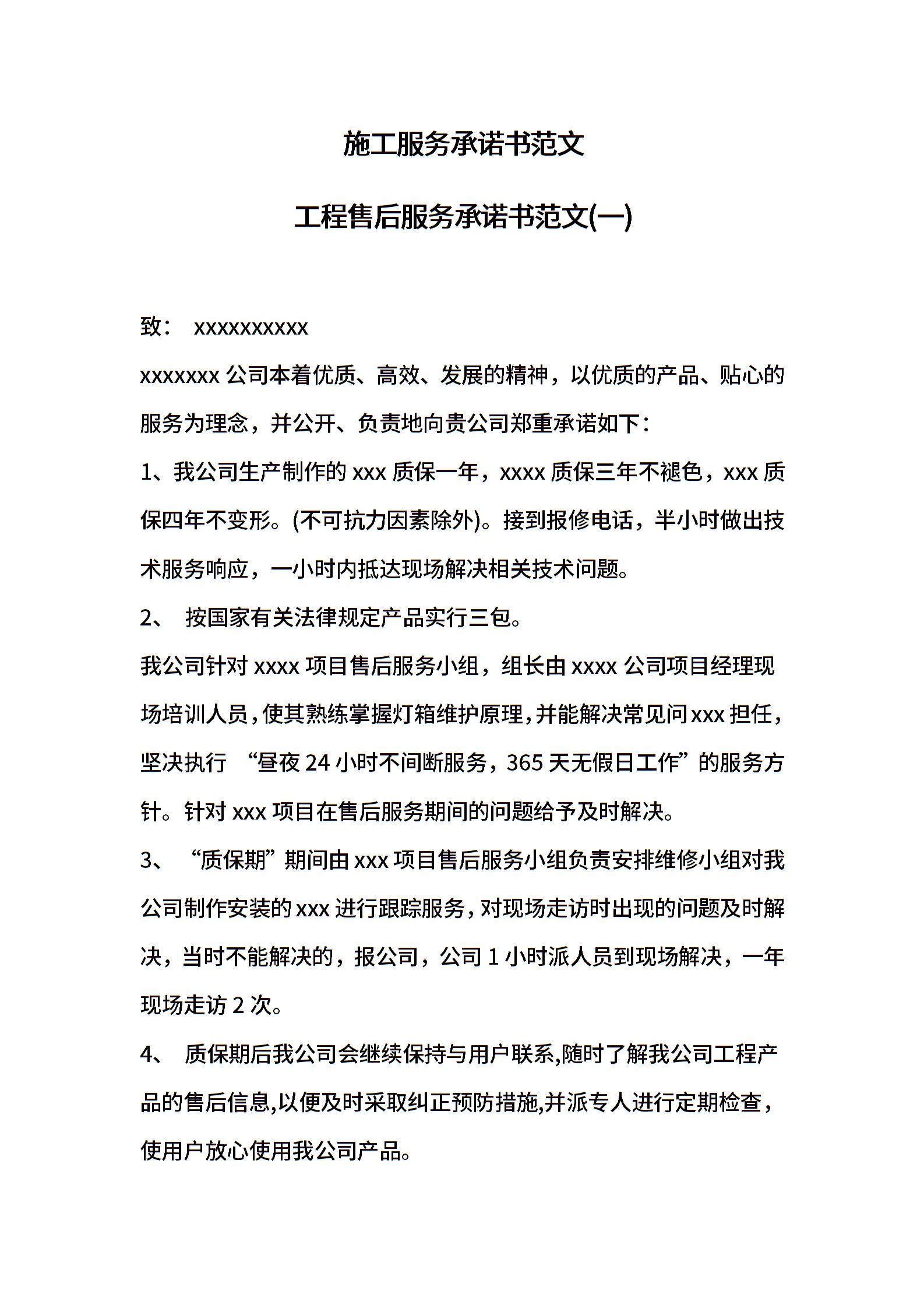 施工服务承诺书范文