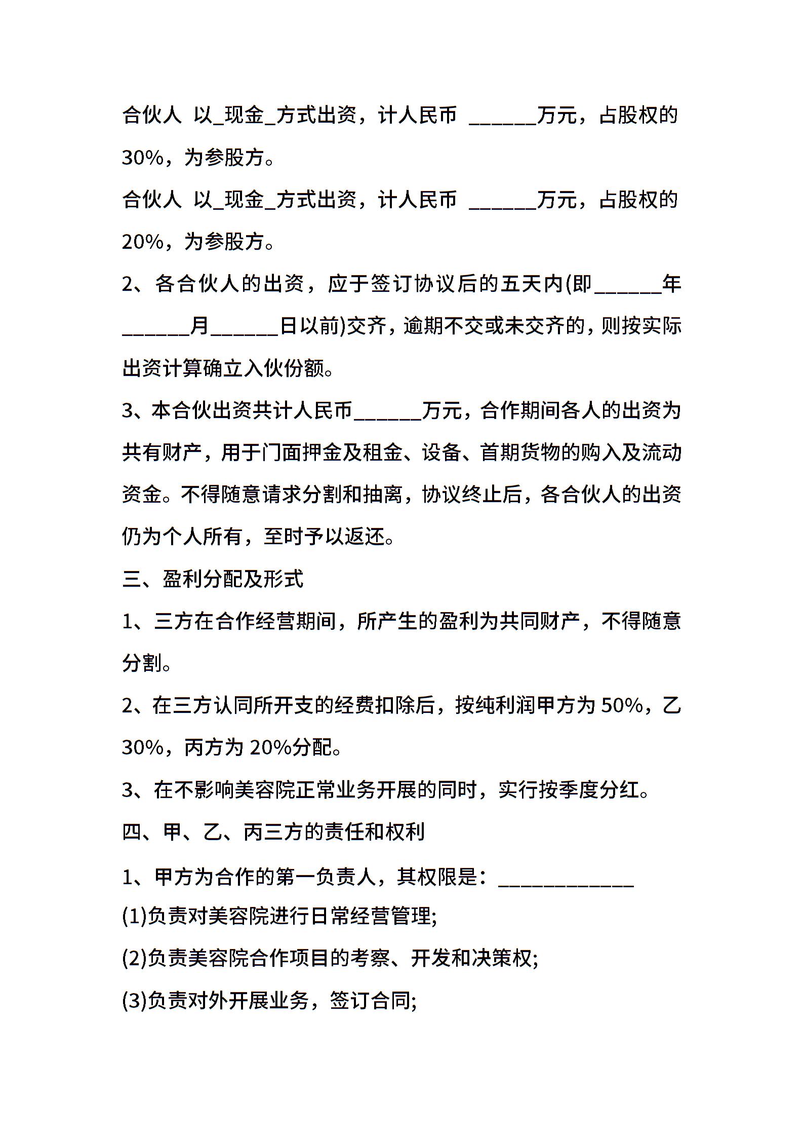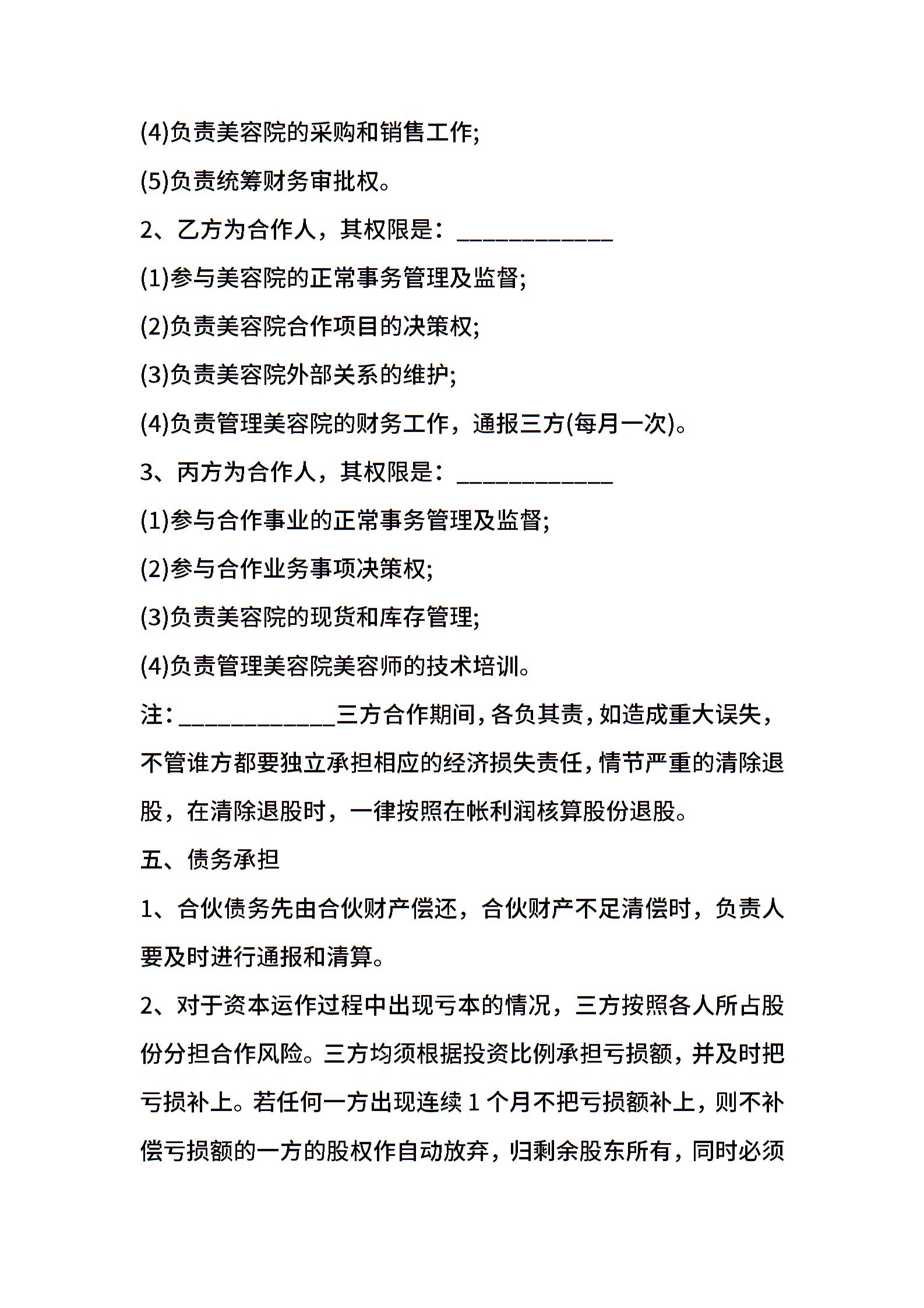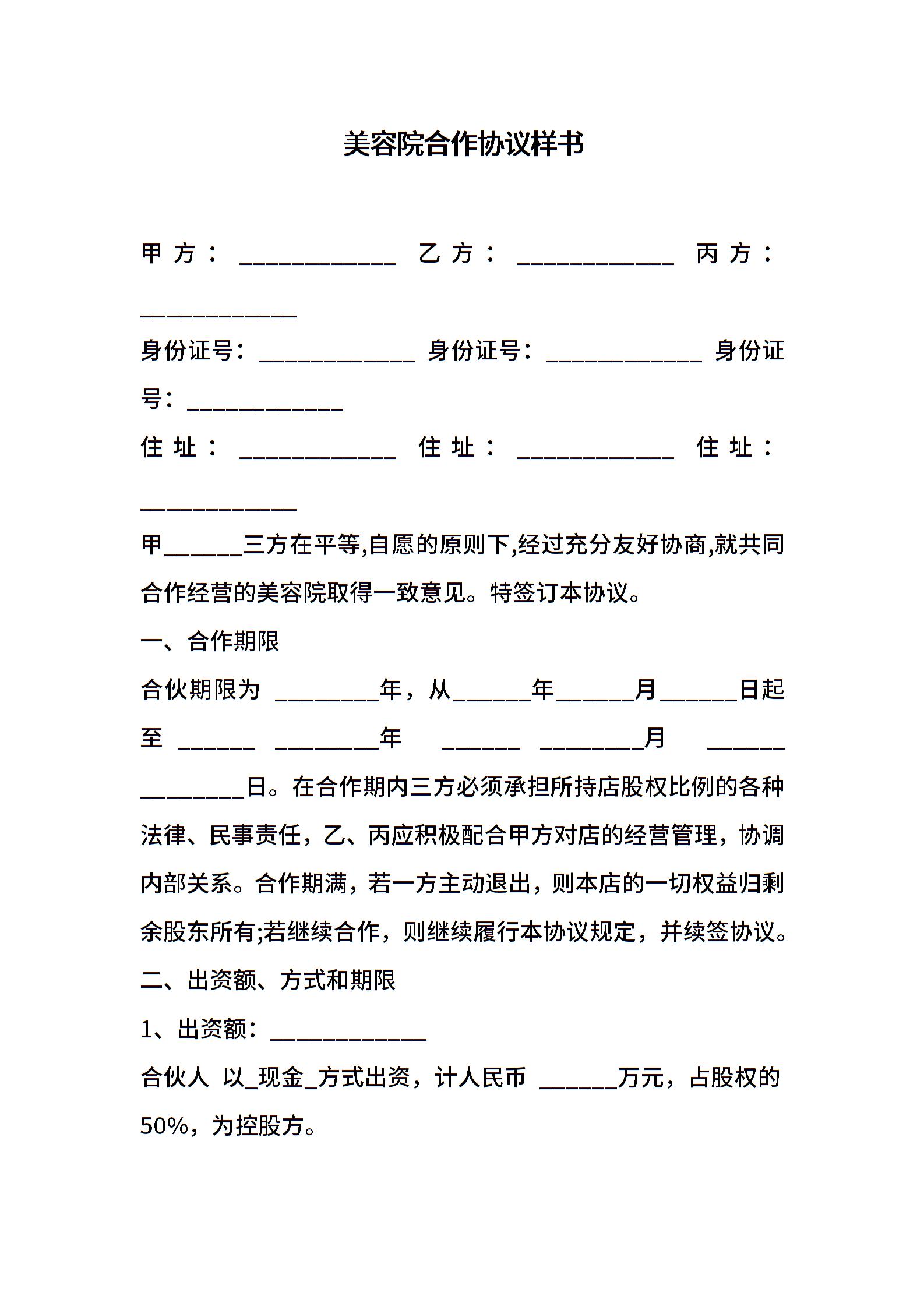 美容院合作协议样书