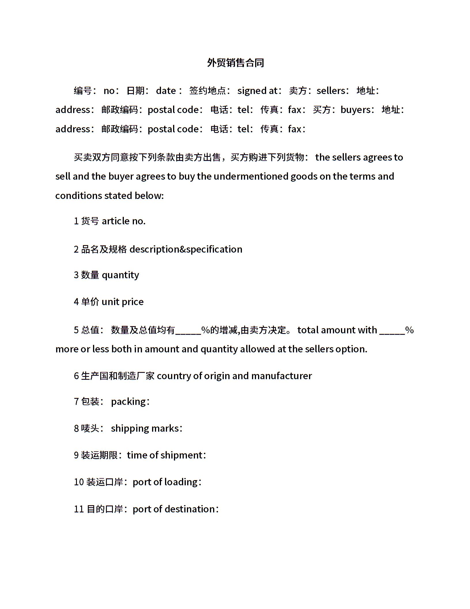 当前位置:量子办公 > 合同模板 > 销售合同 >