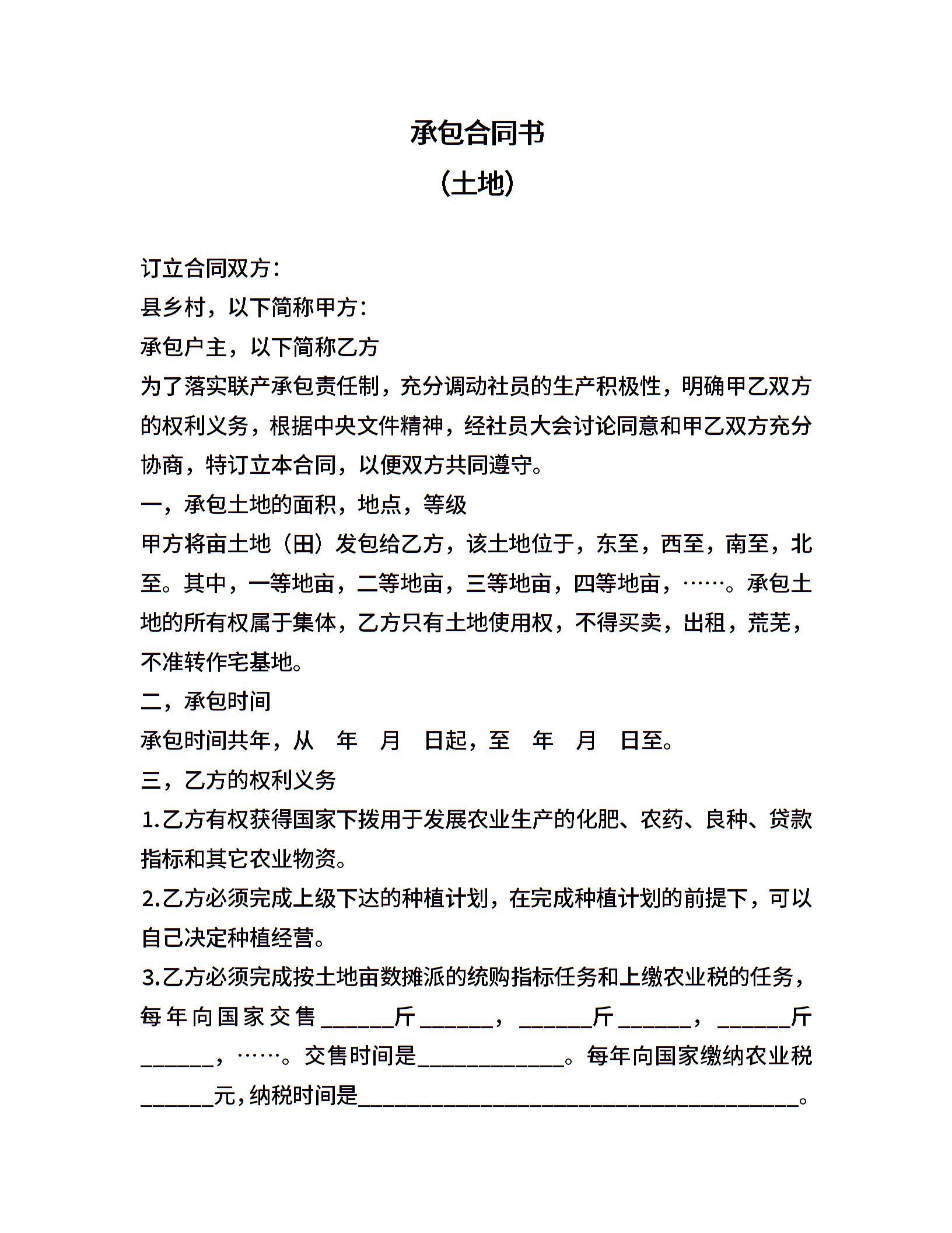 承包合同书(土地1)