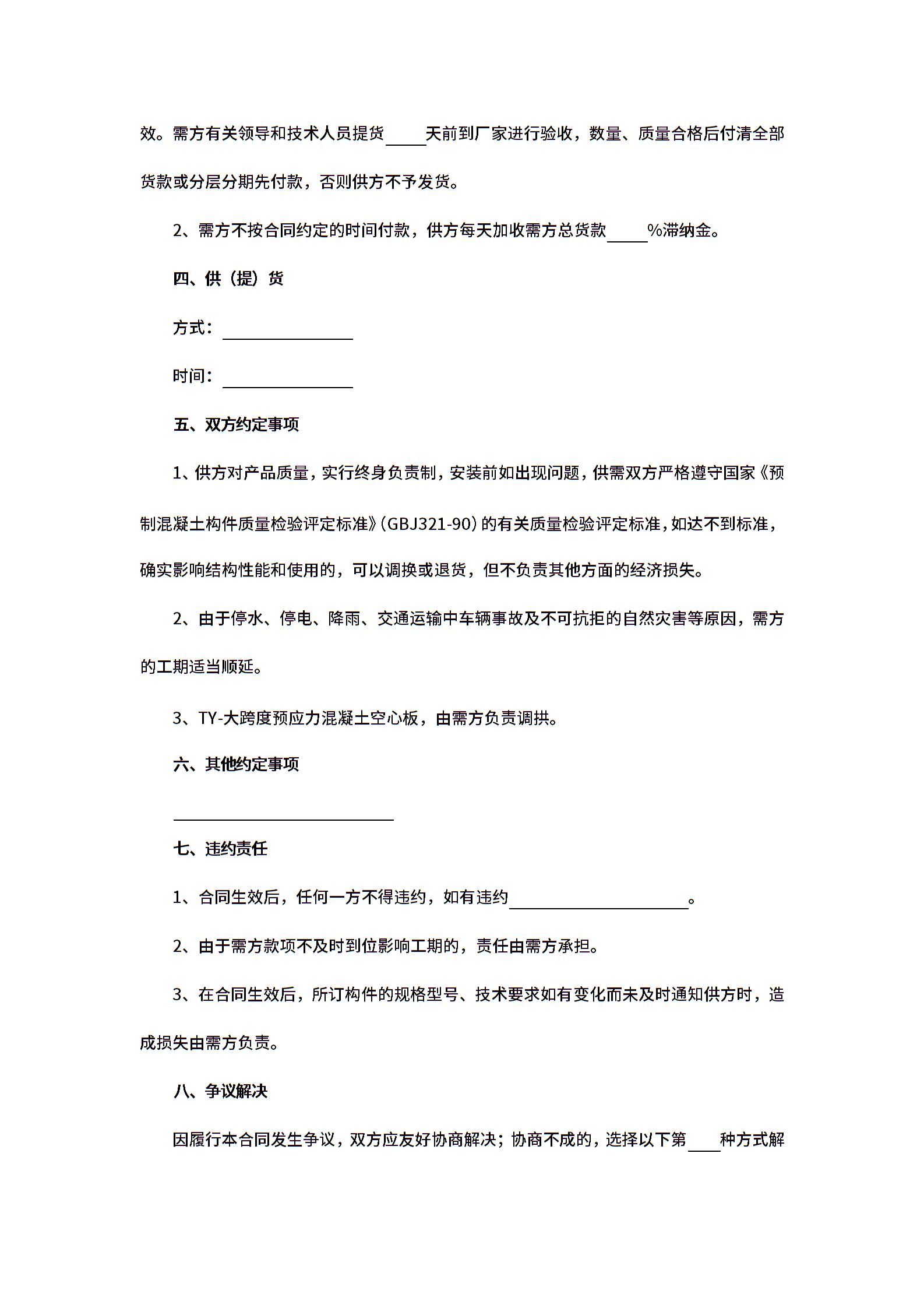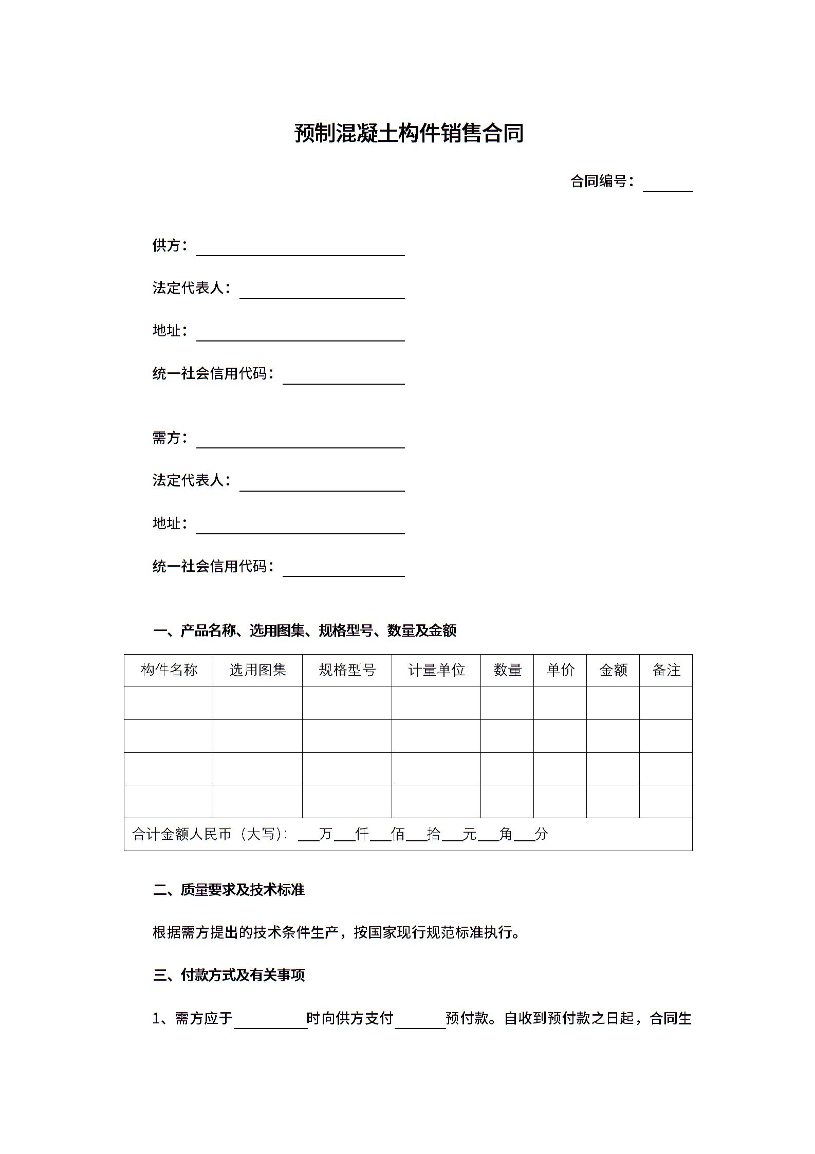 预制混凝土构件销售合同