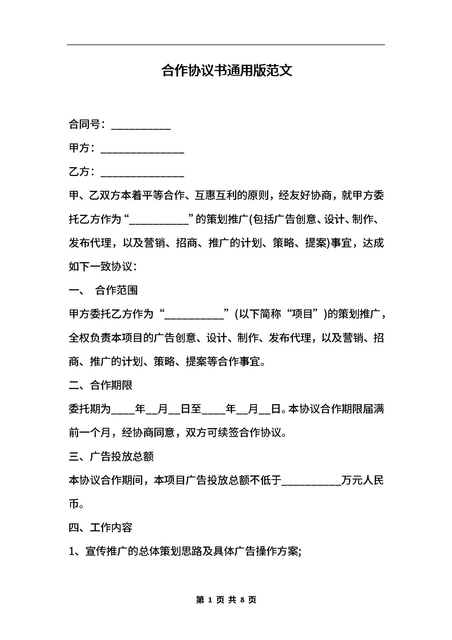 当前位置:量子办公 > 合同模板 > 合作合同 >