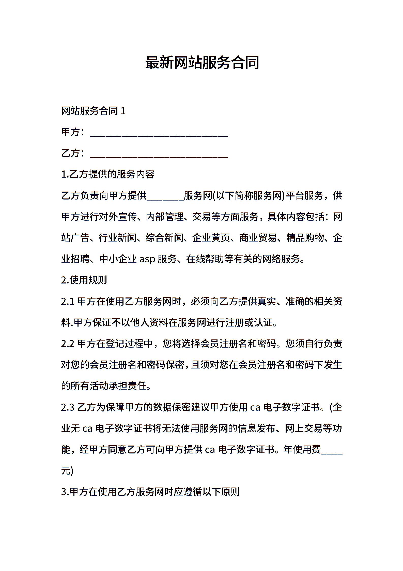 最新网站服务合同