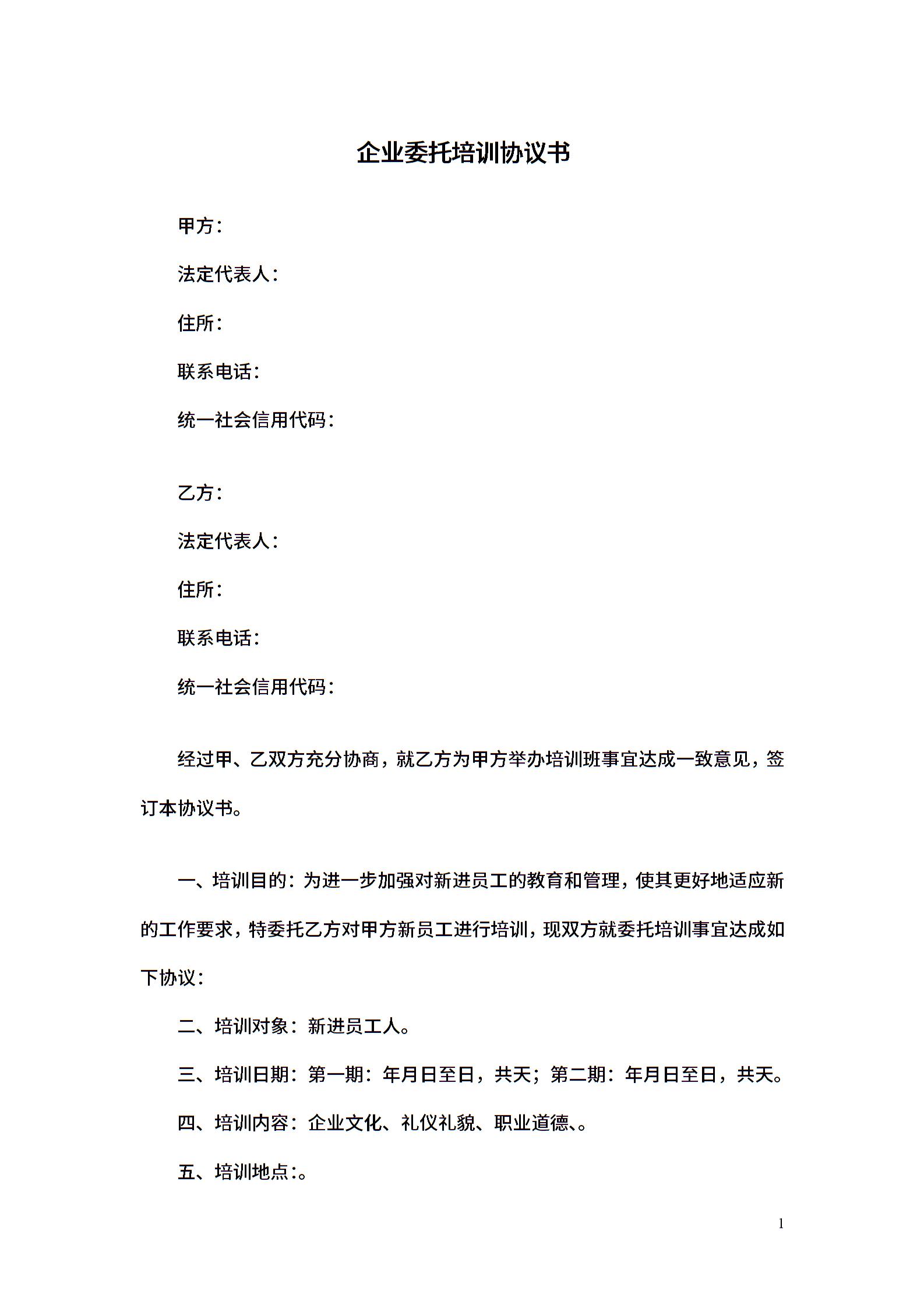企业委托培训协议书