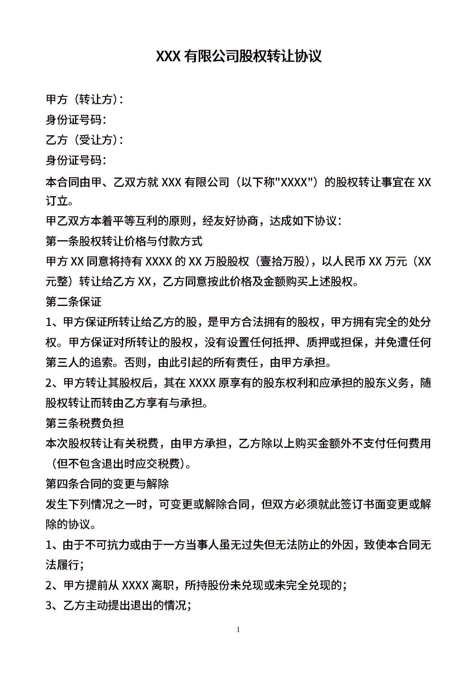 股权转让协议(个人之间)