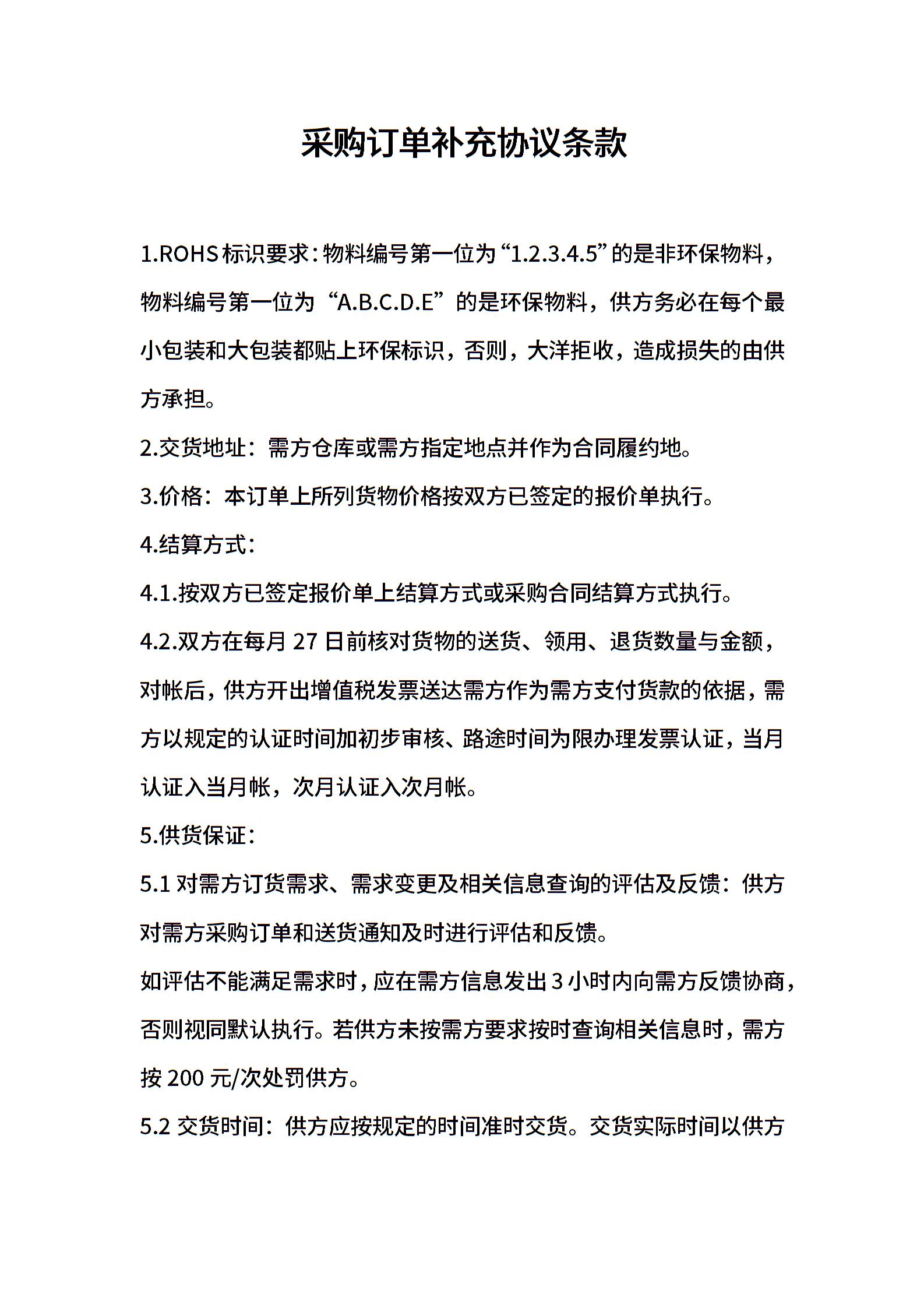 采购订单补充协议条款