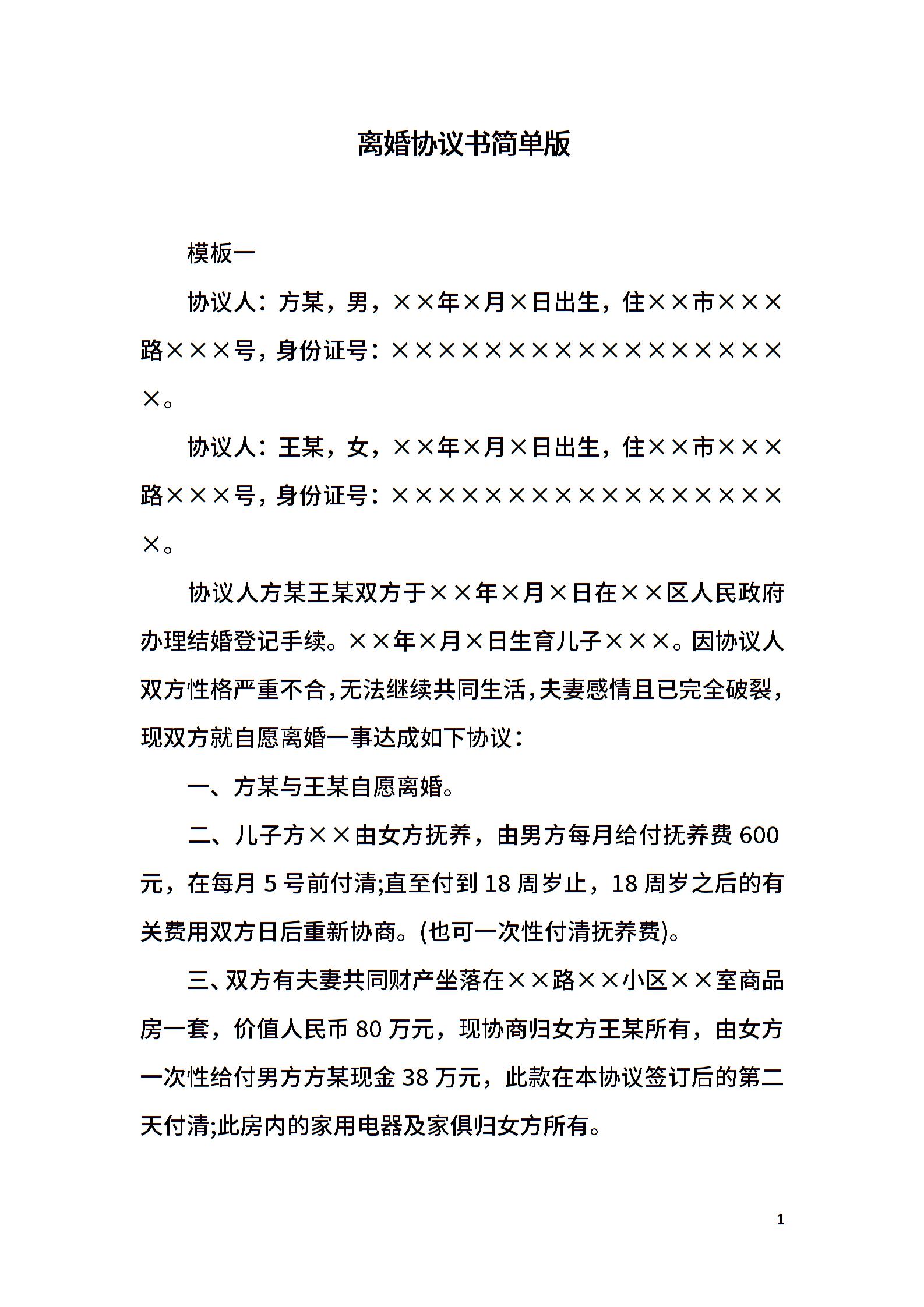 离婚协议书简单版