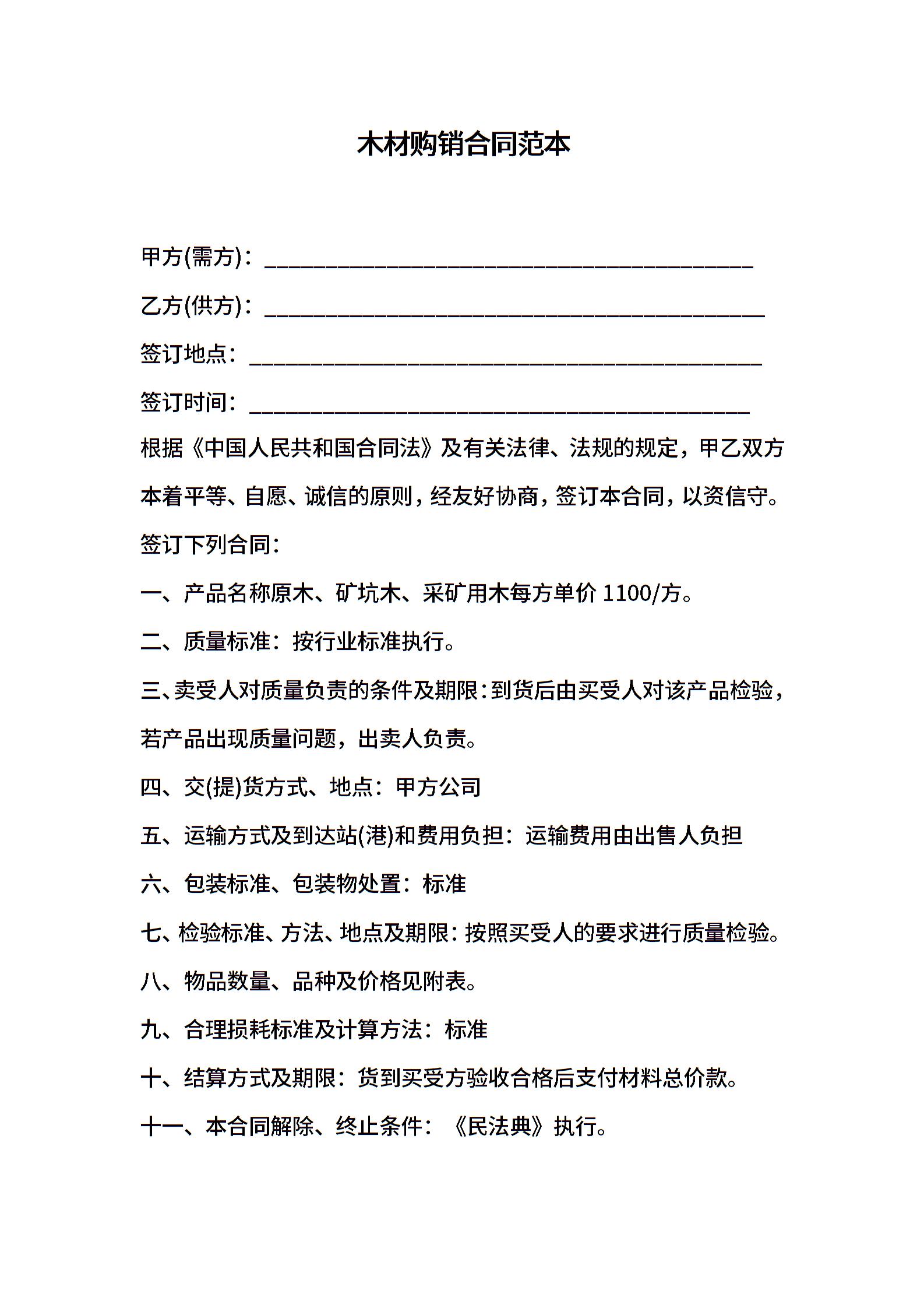 木材购销合同范本