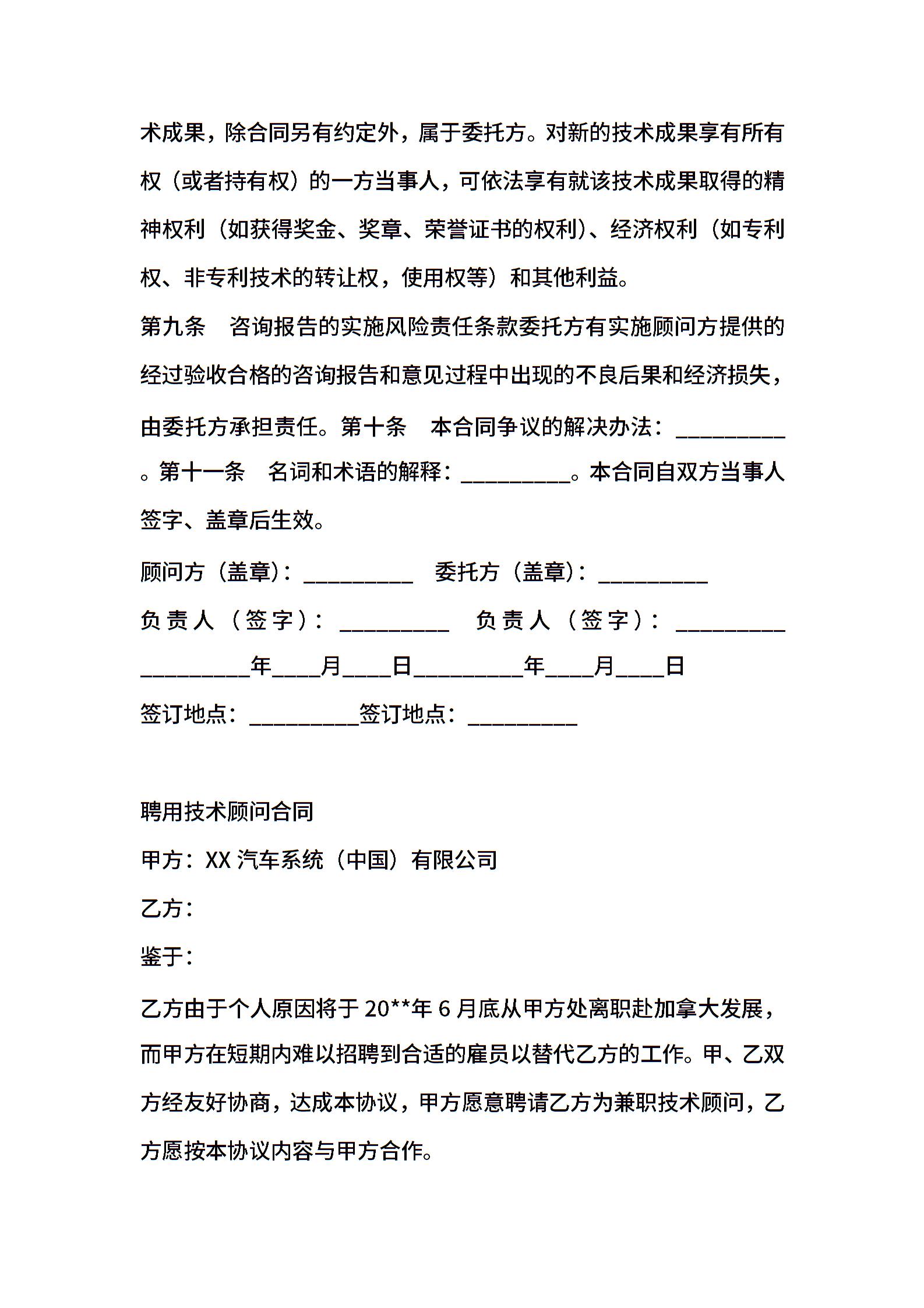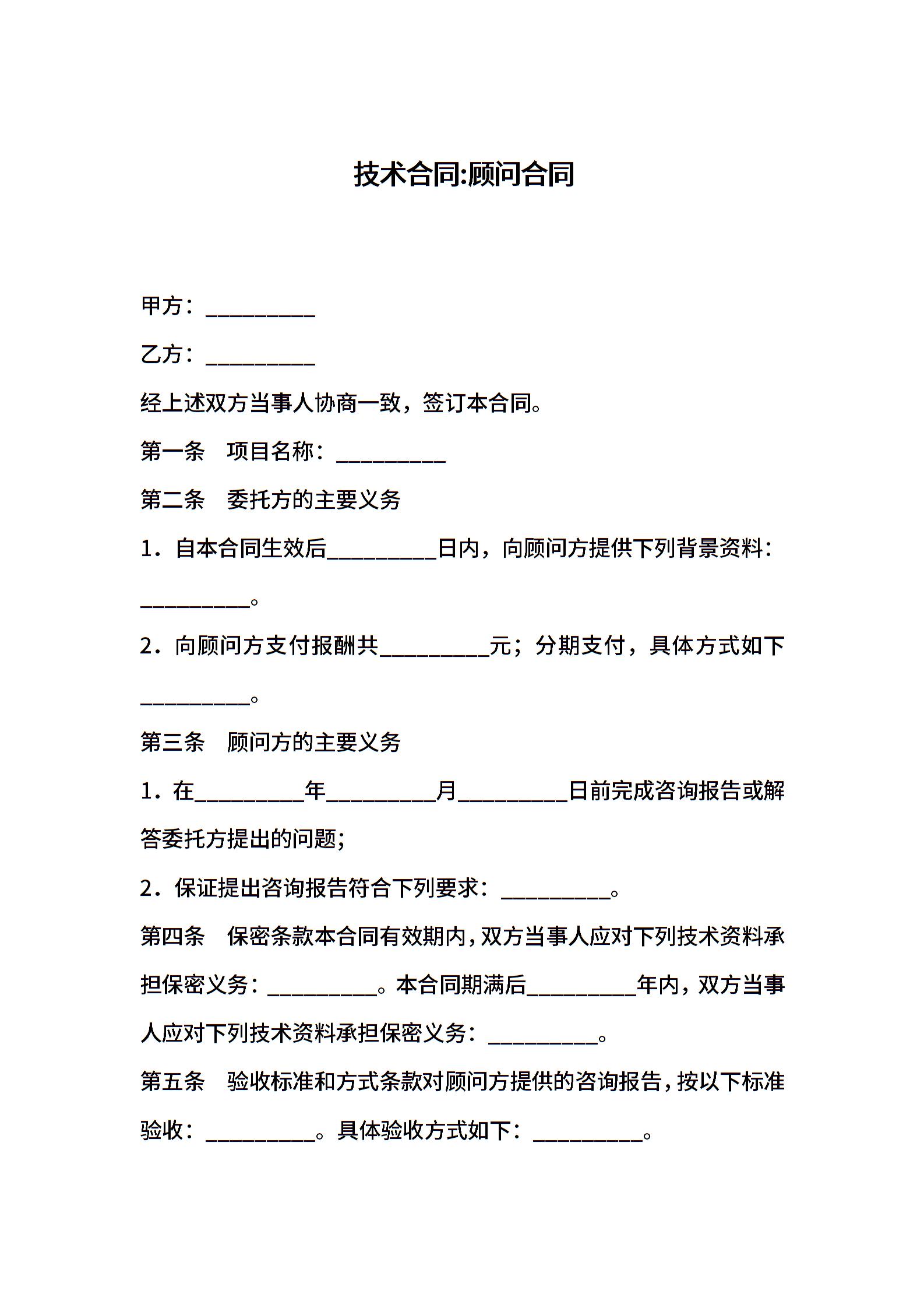 技术合同 顾问合同