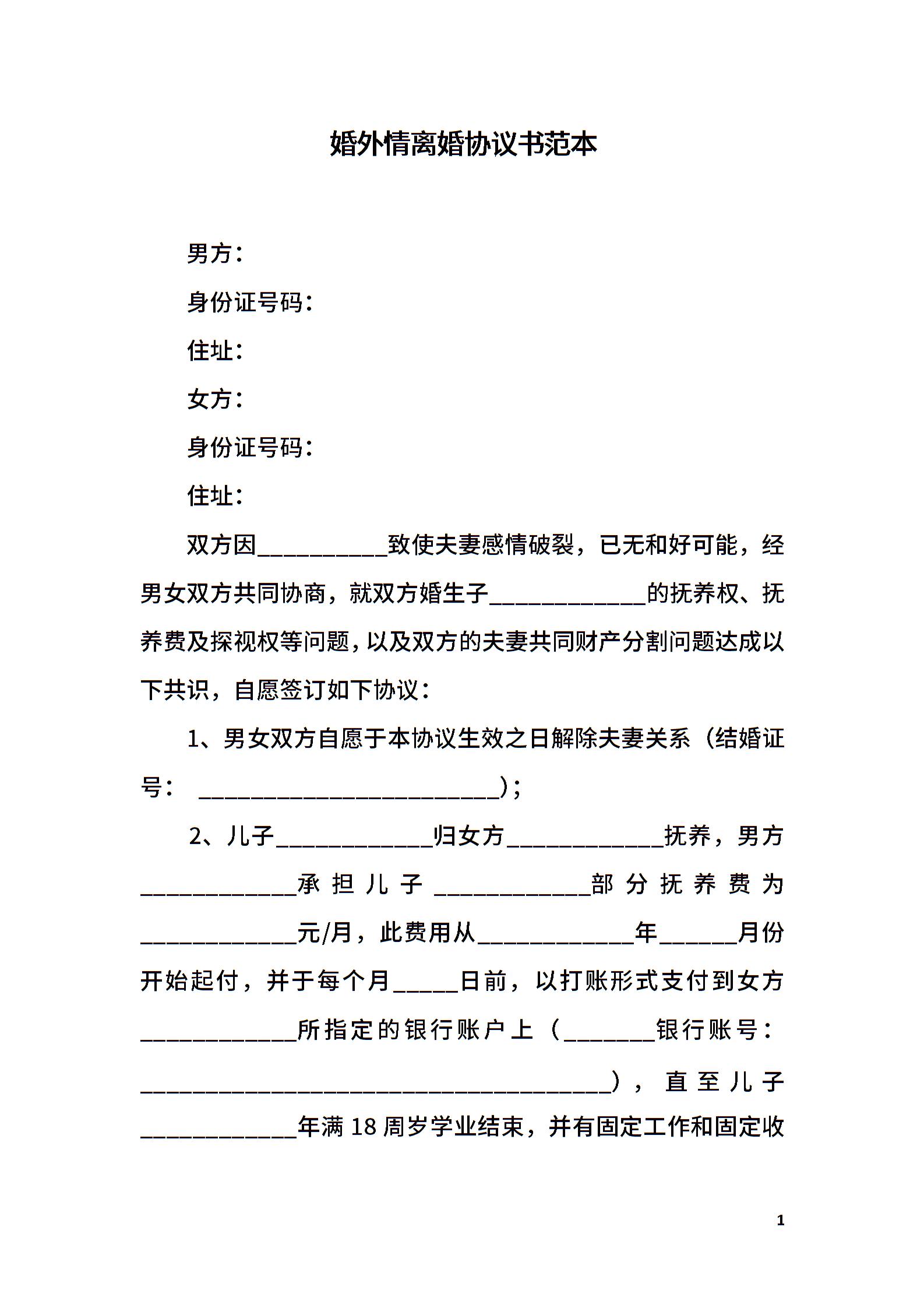 婚外情离婚协议书范本