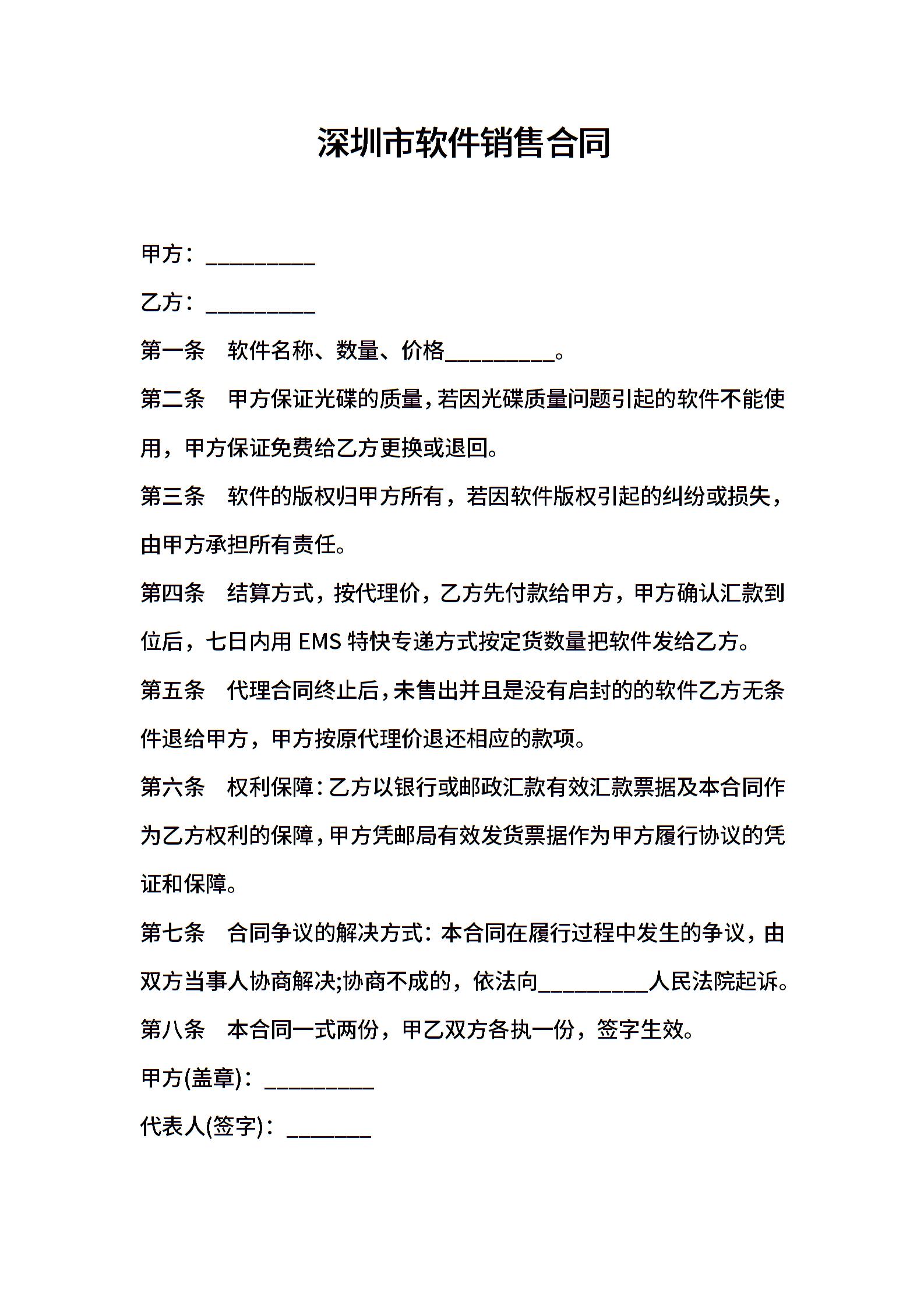 深圳市软件销售合同