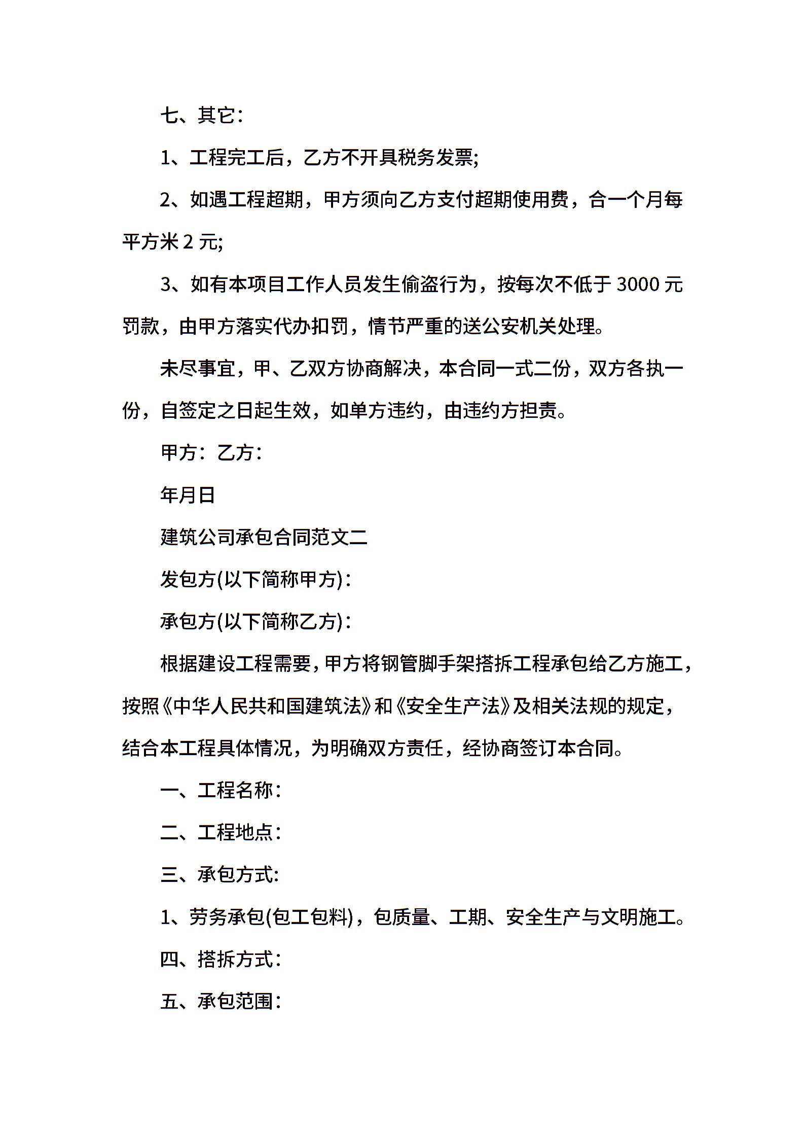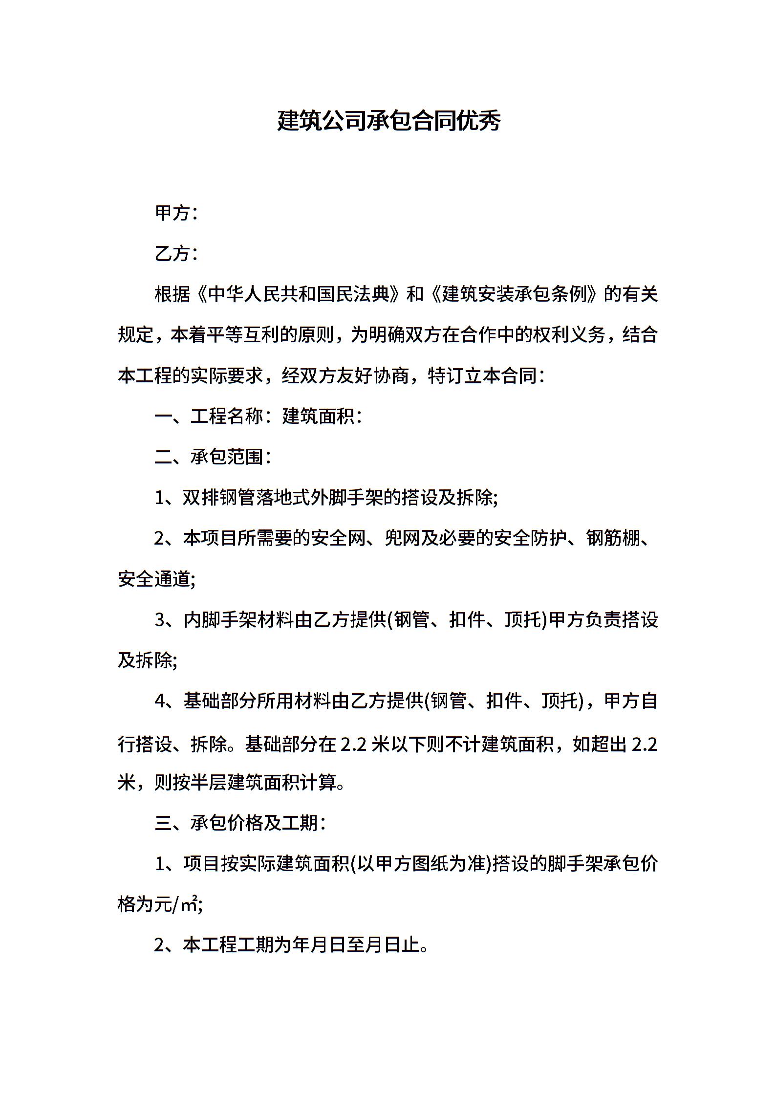 建筑公司承包合同优秀