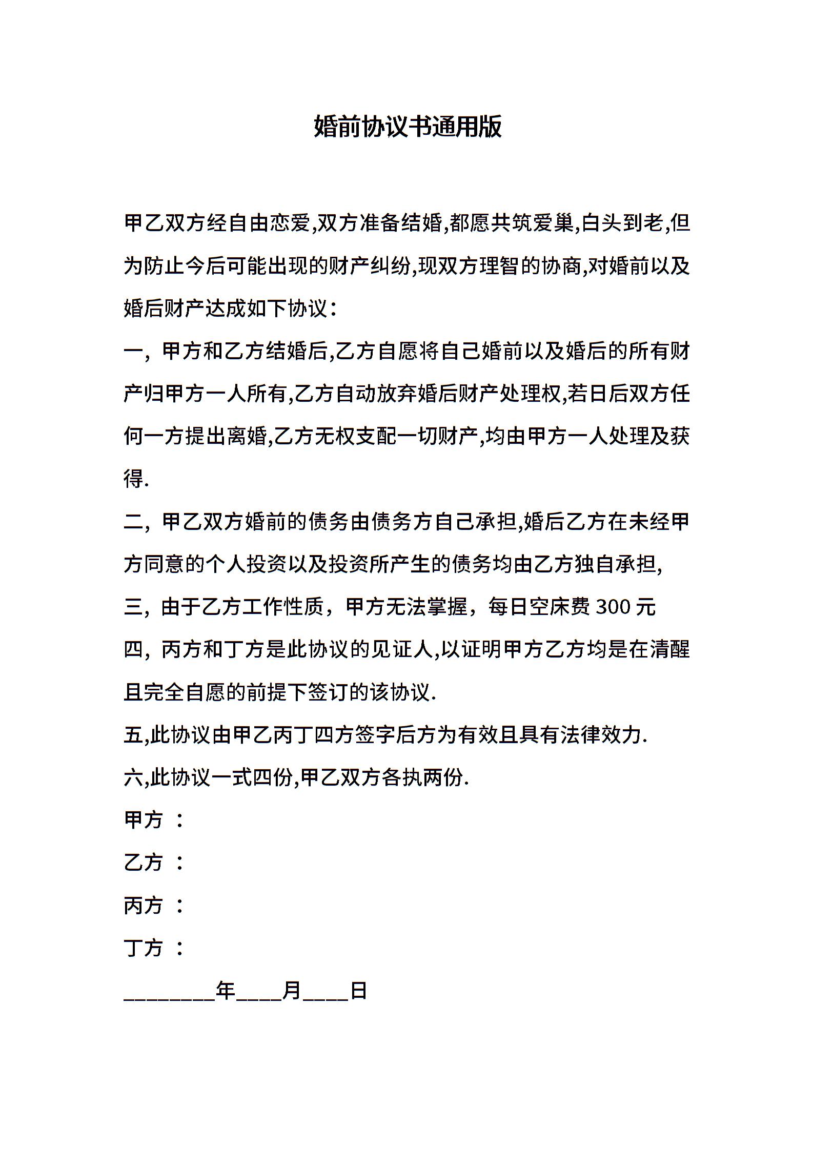 当前位置:量子办公 > 合同模板 > 婚前协议 >