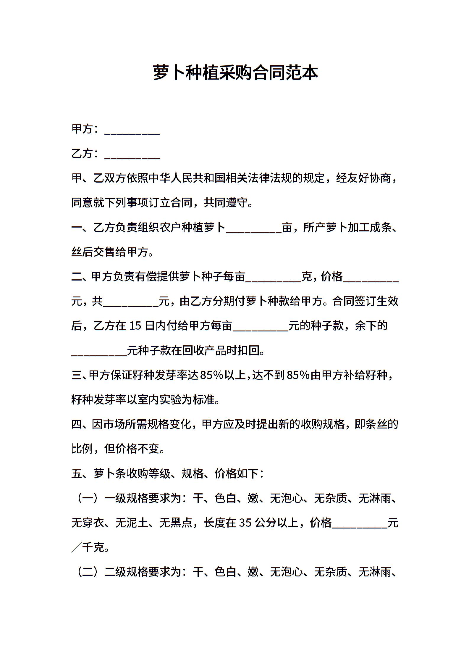萝卜种植采购合同范本