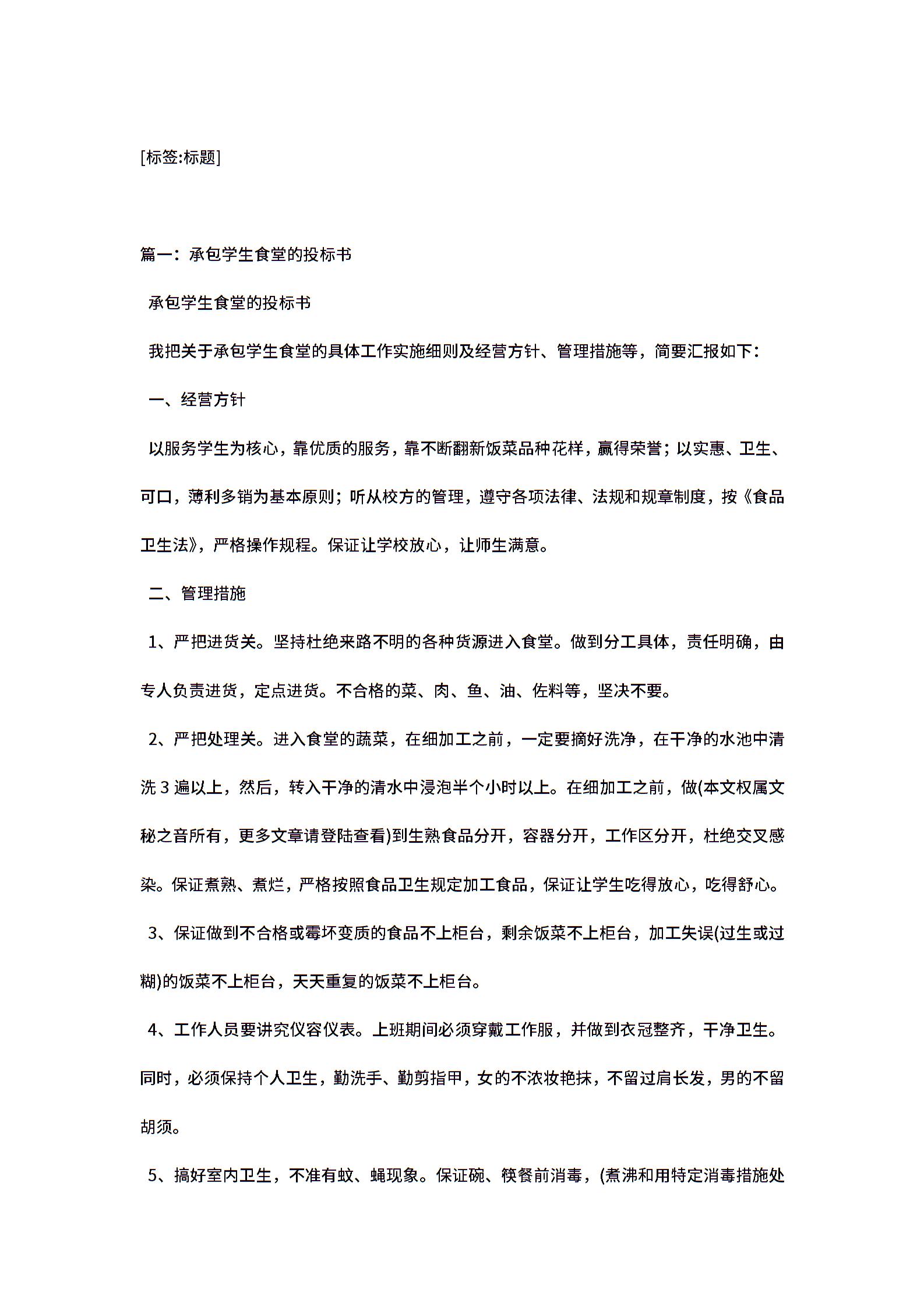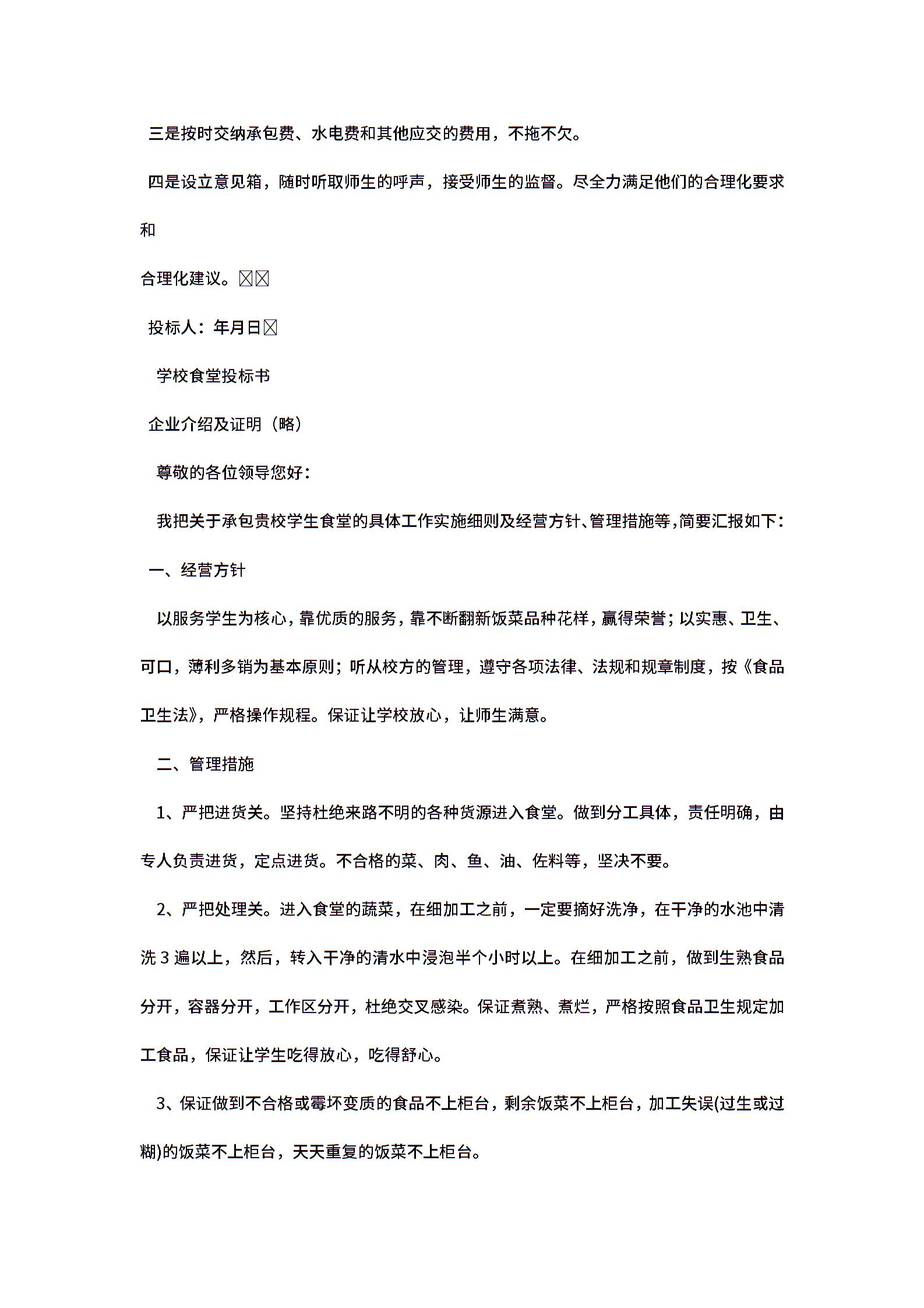 关于承包学生食堂的投标书.doc