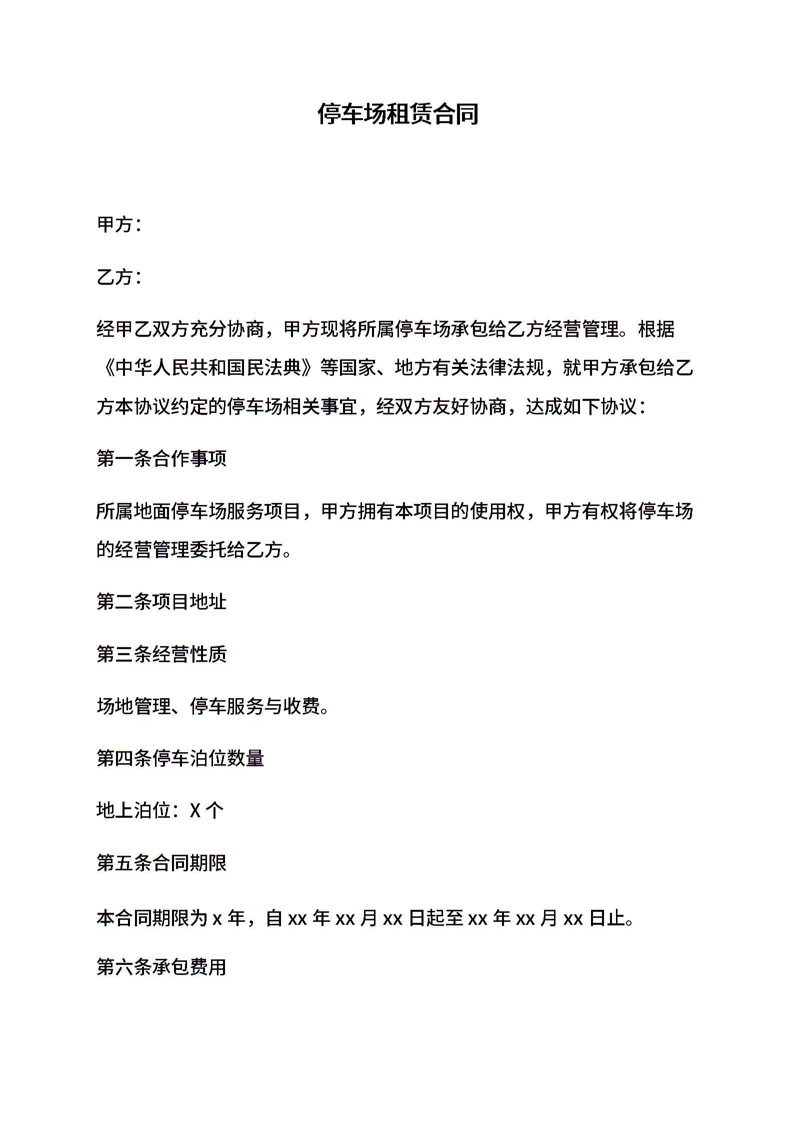 停车场租赁合同 (1)