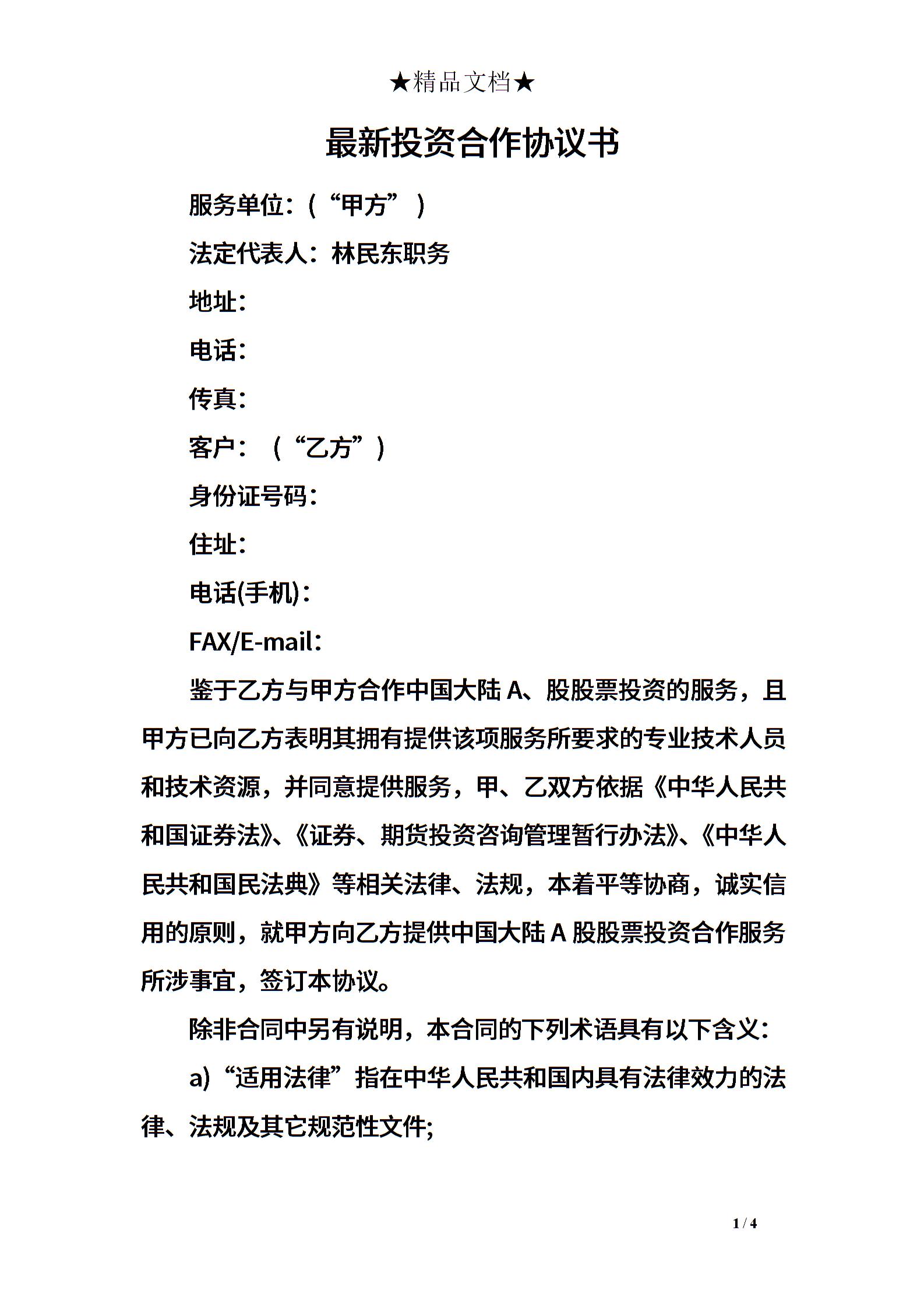 当前位置:量子办公 > 合同模板 > 合作合同 >