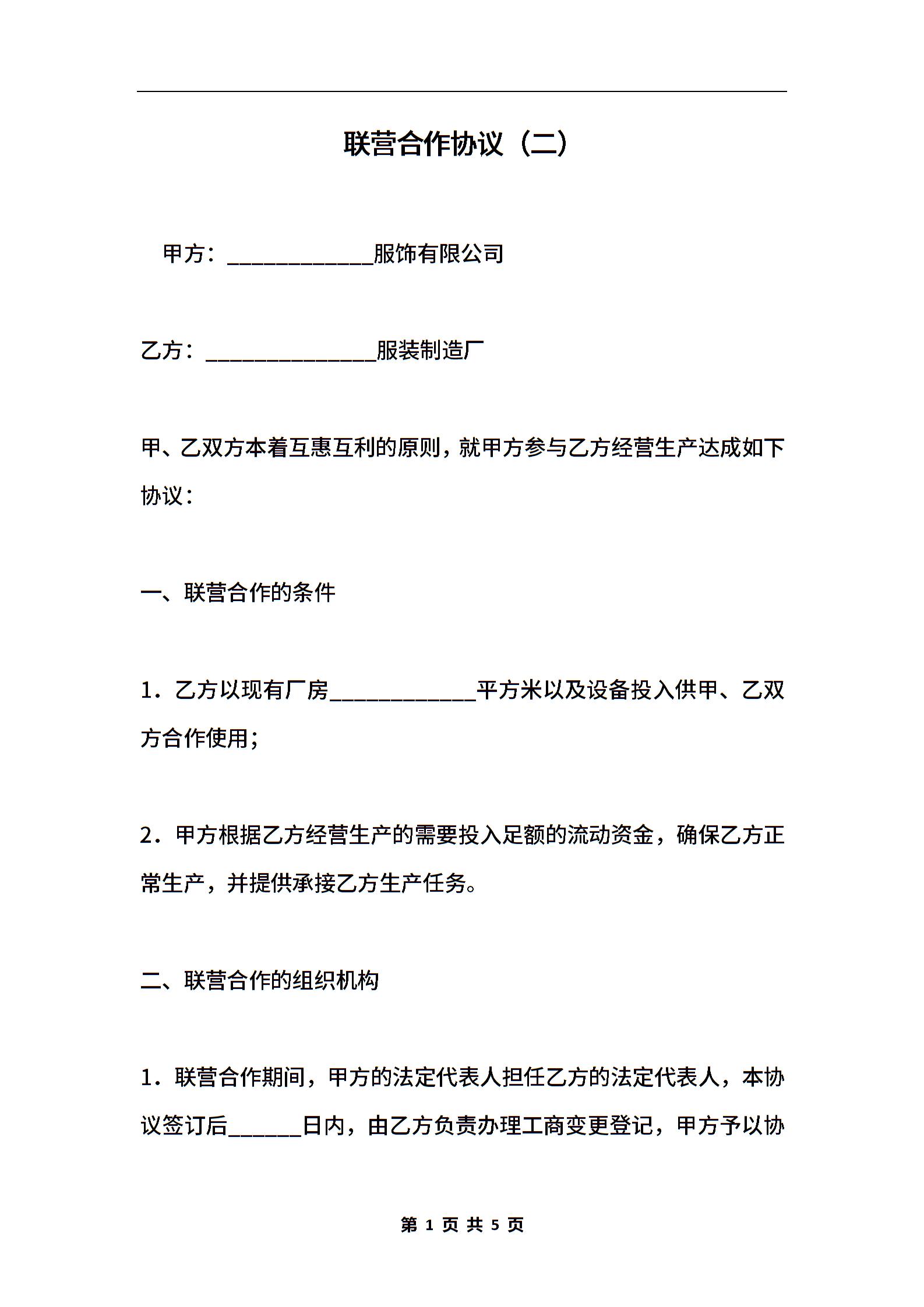 联营合作协议(二)