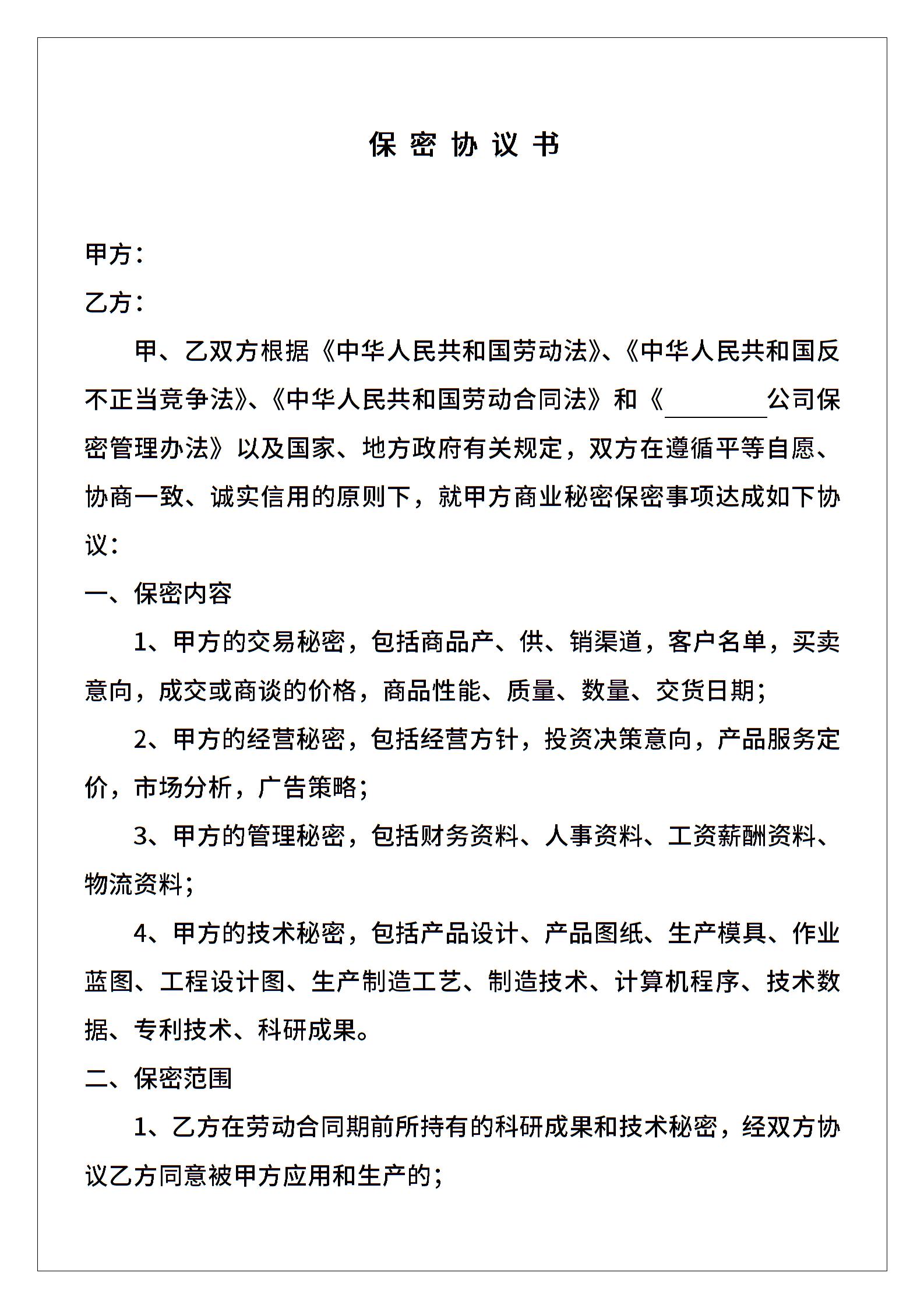 • 分类 保密协议