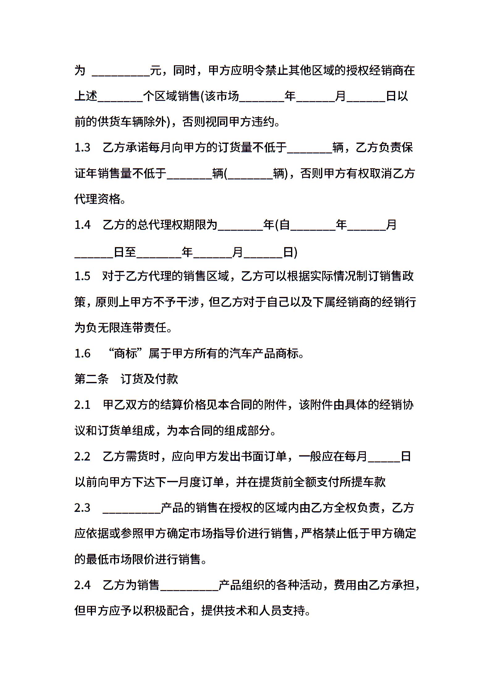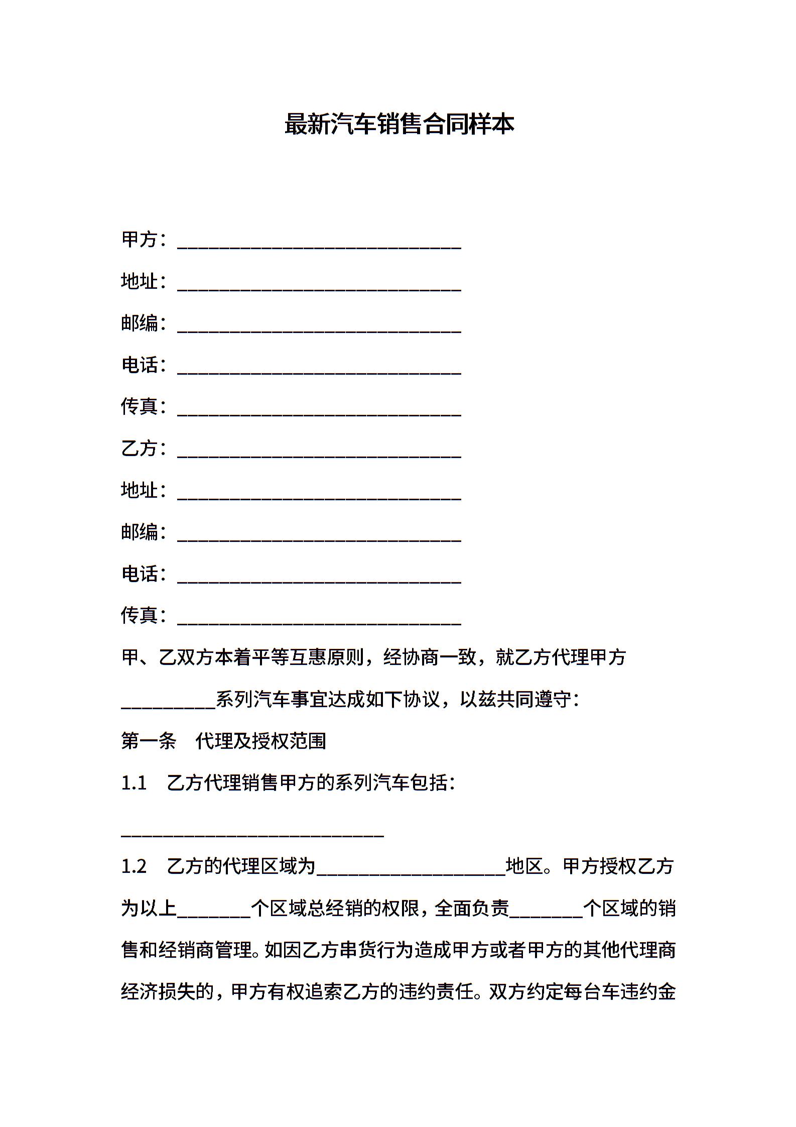 最新汽车销售合同样本
