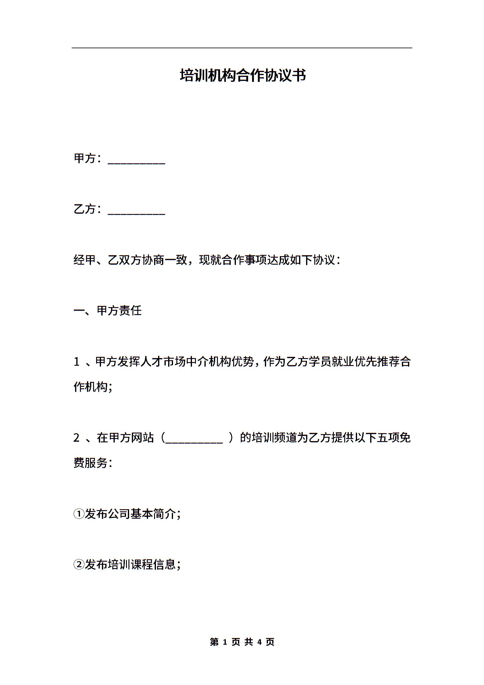 培训机构合作协议书