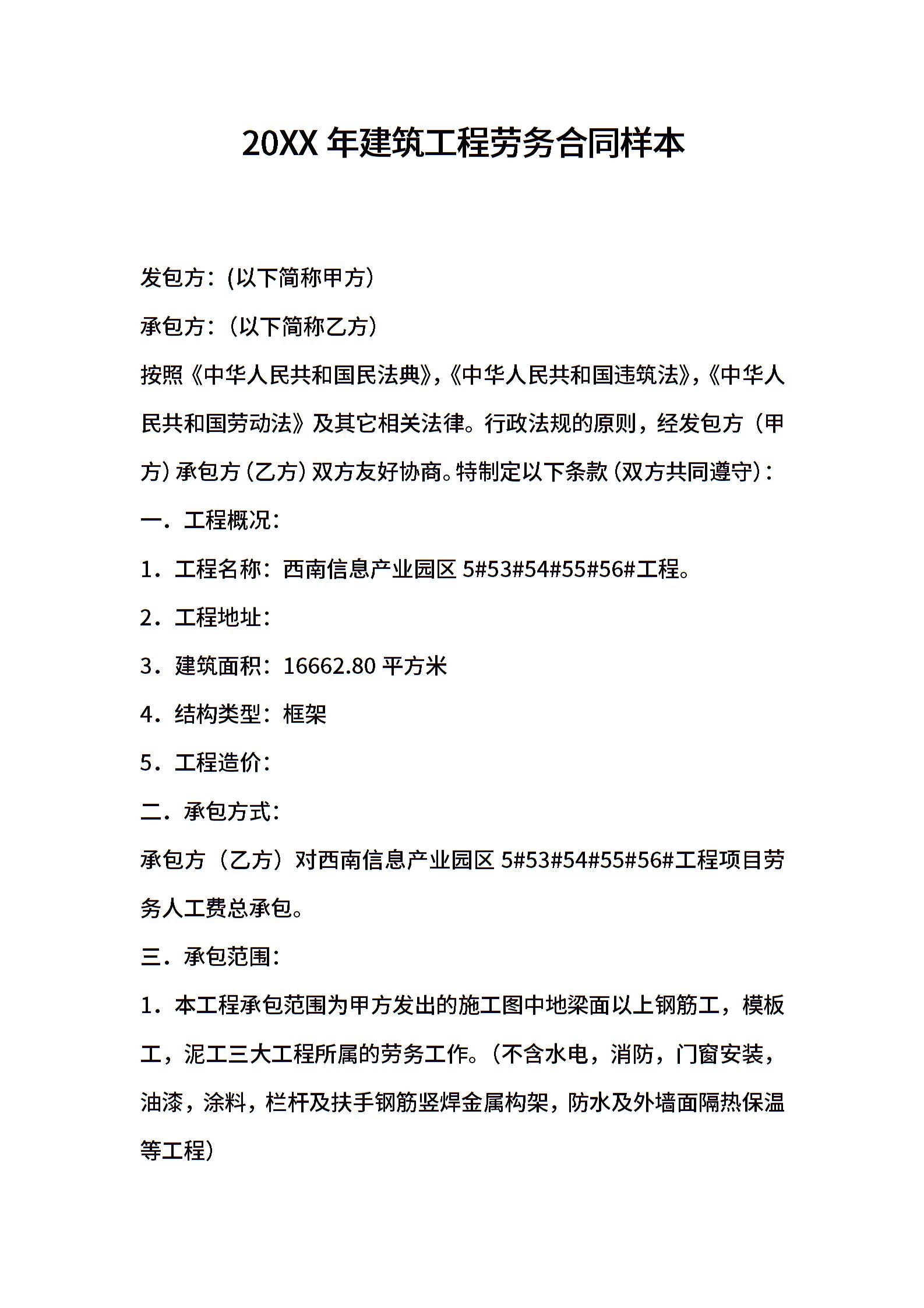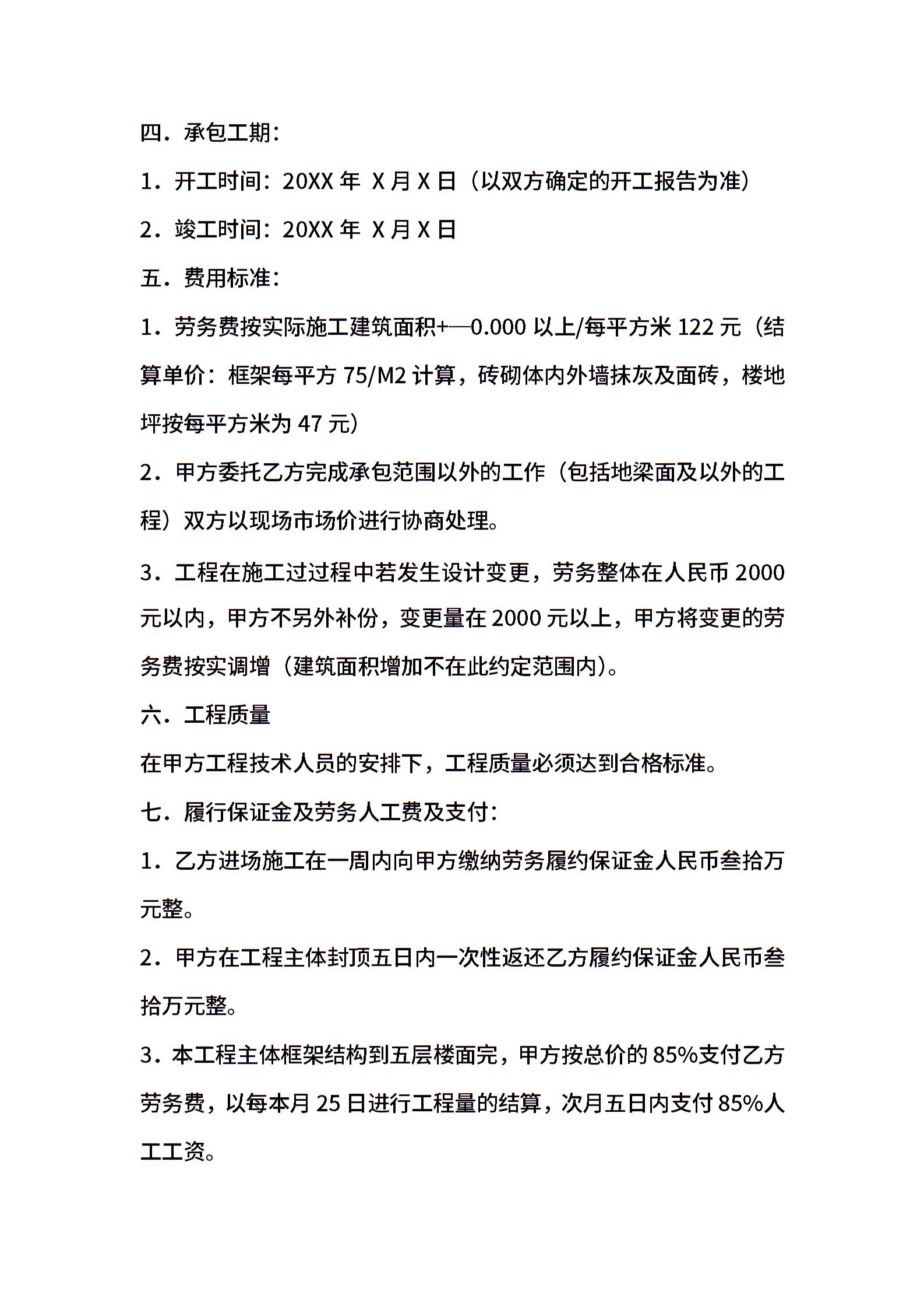 2021年建筑工程劳务合同样本