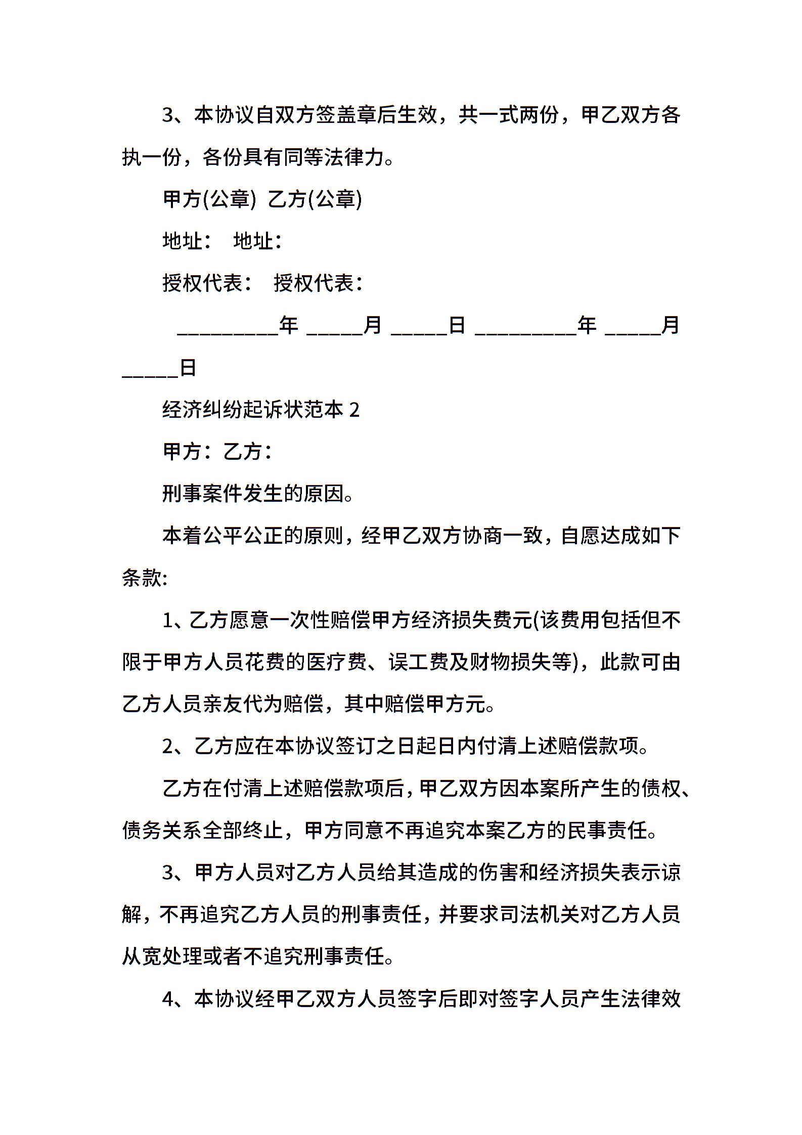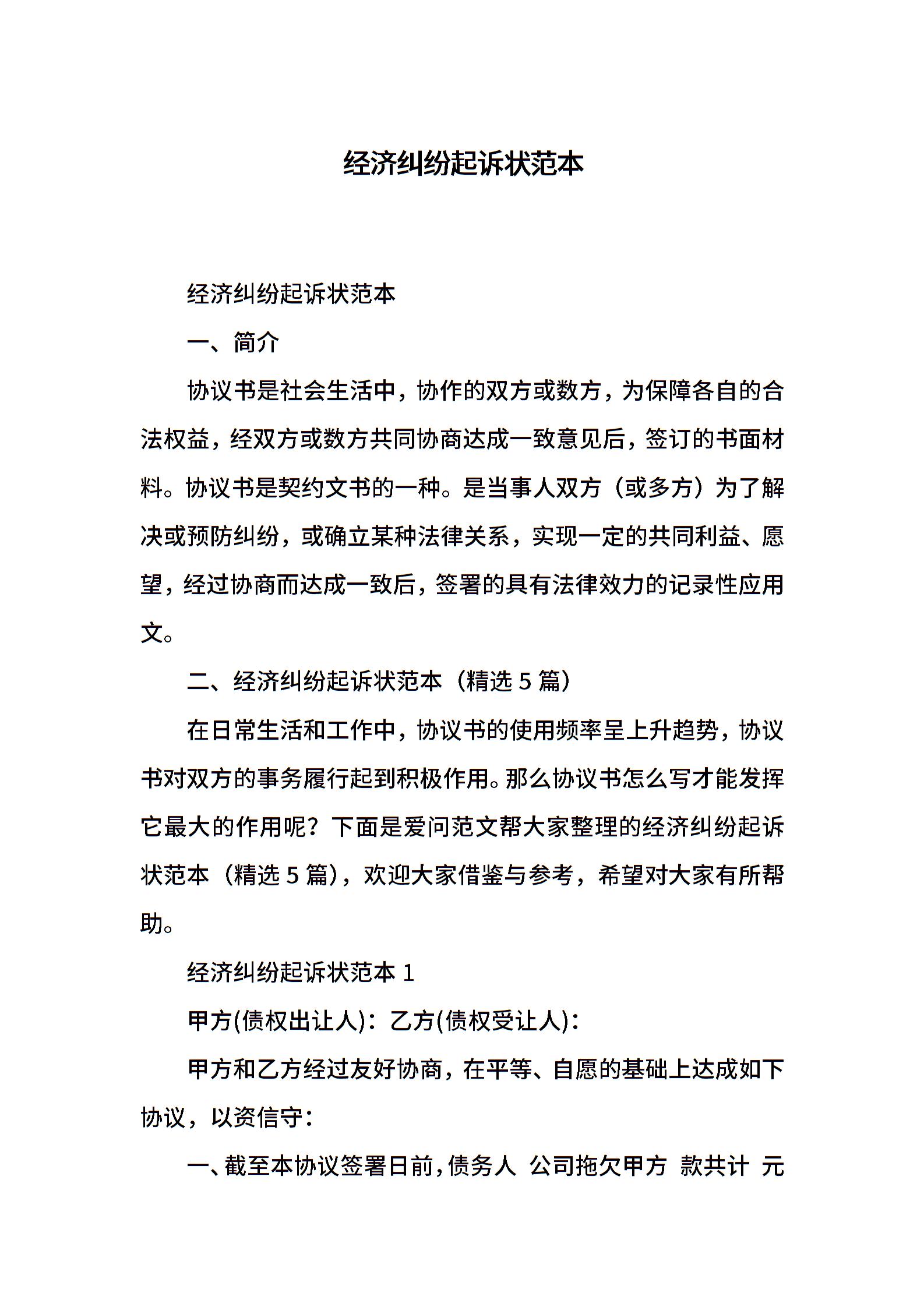 经济纠纷起诉状范本
