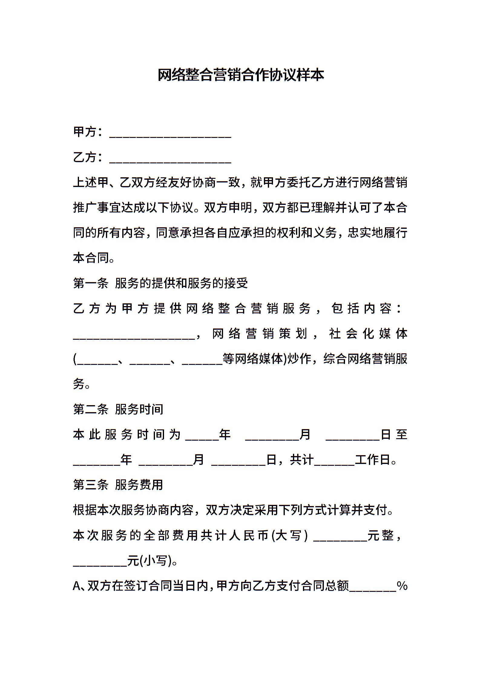网络整合营销合作协议样本