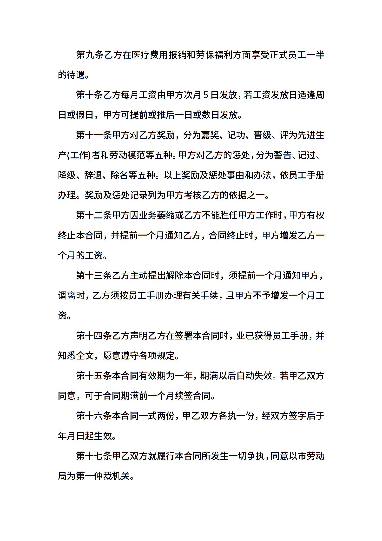 • 分类 临时用工合同