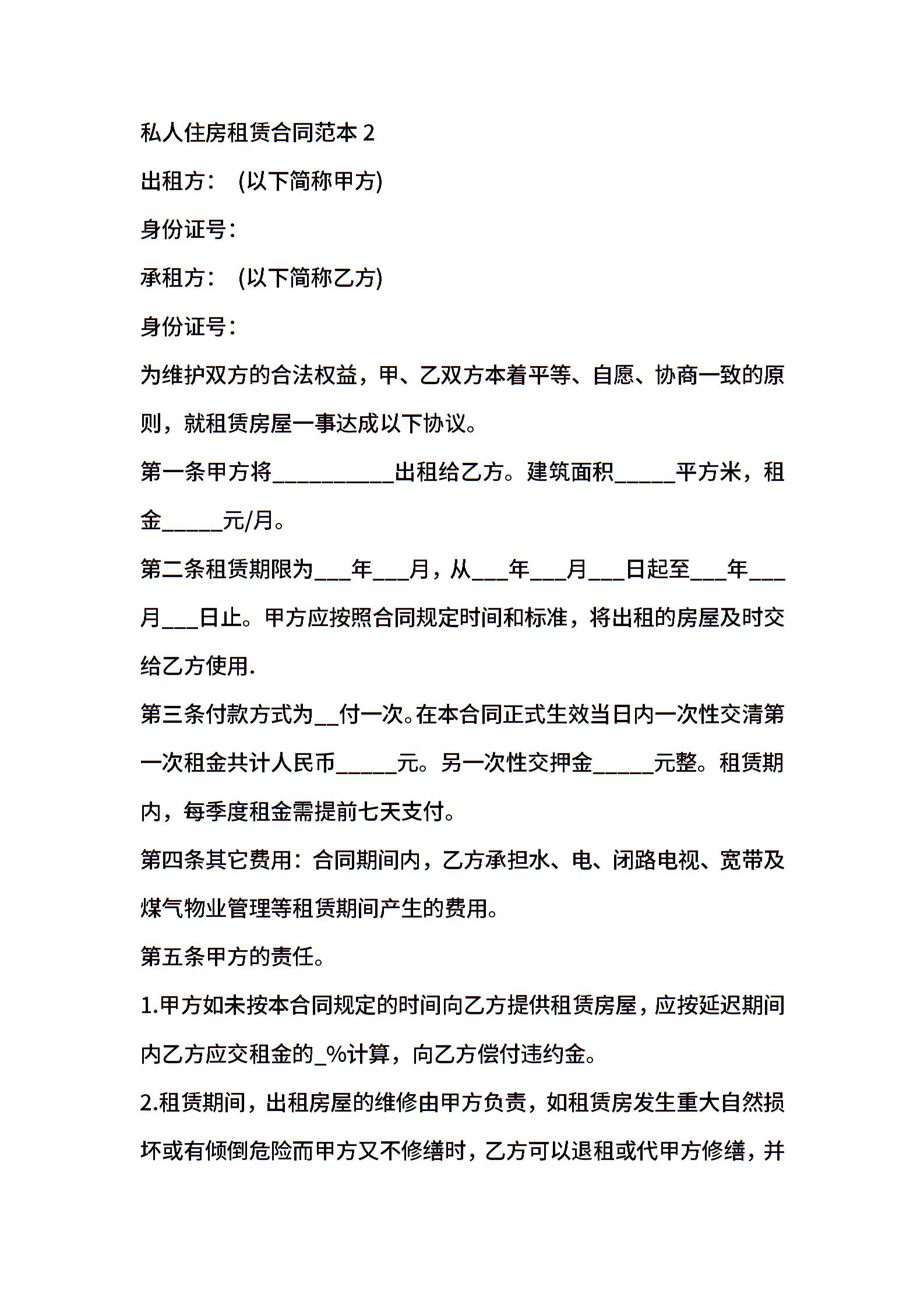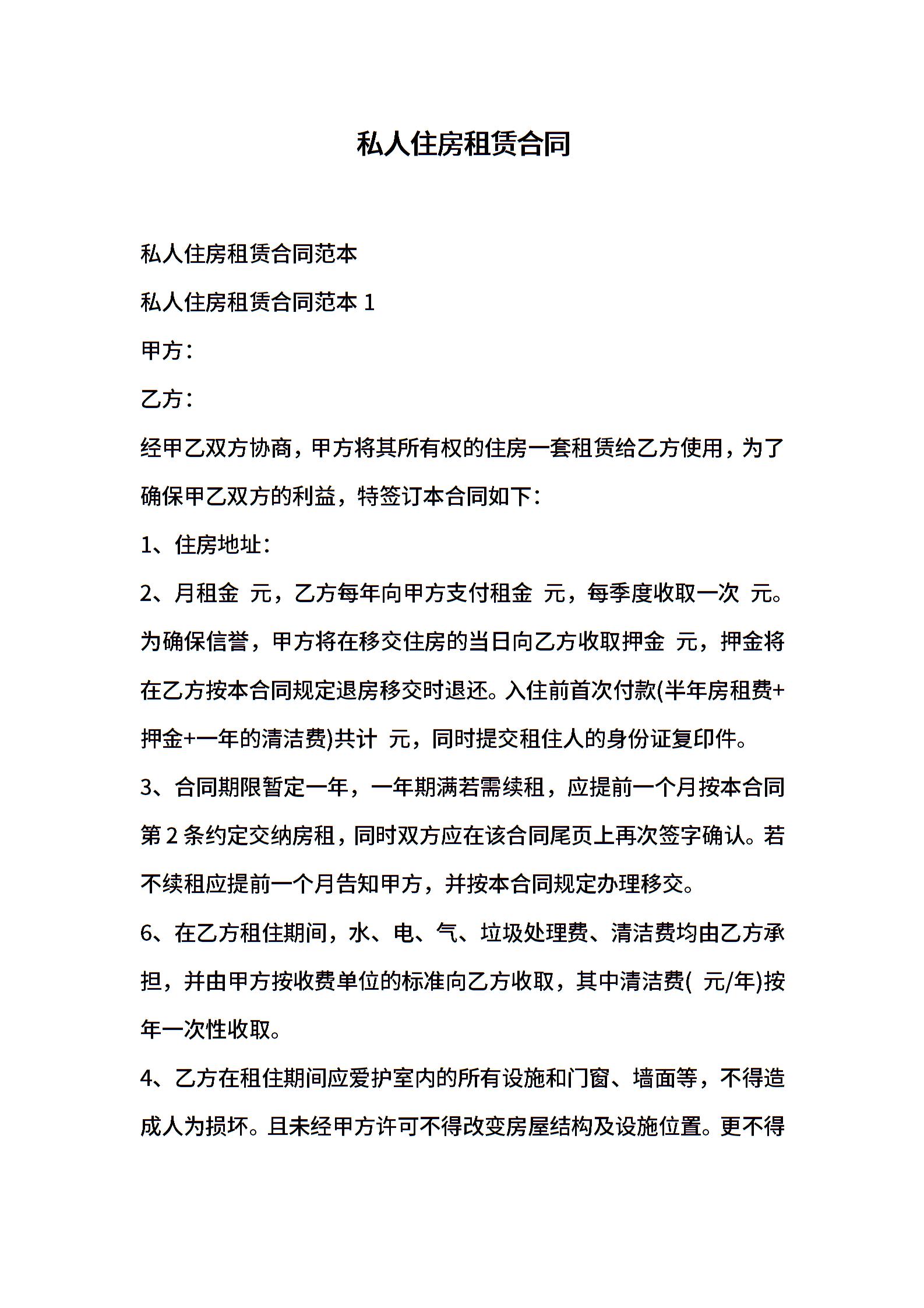 私人住房租赁合同