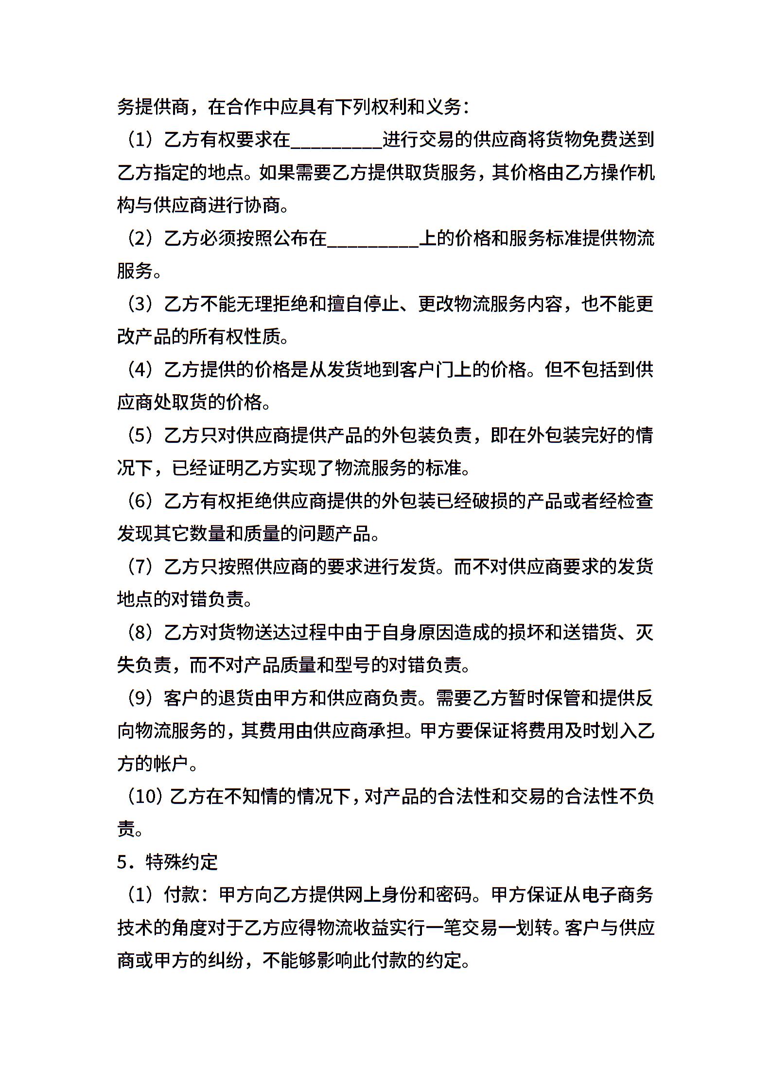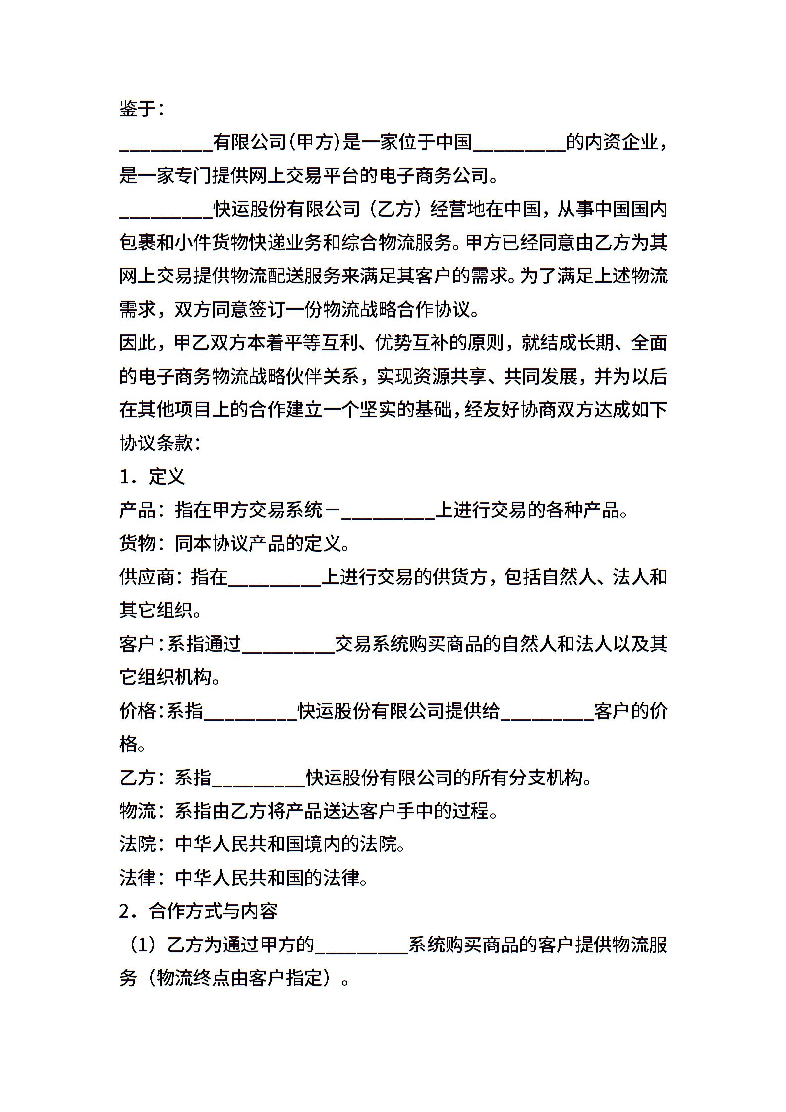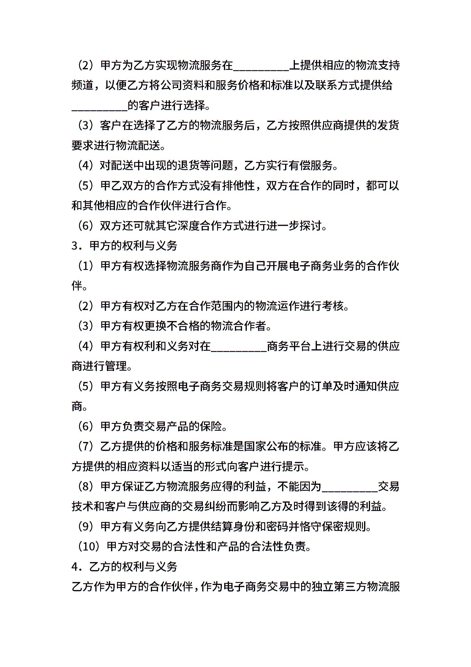 电子商务物流合作服务协议