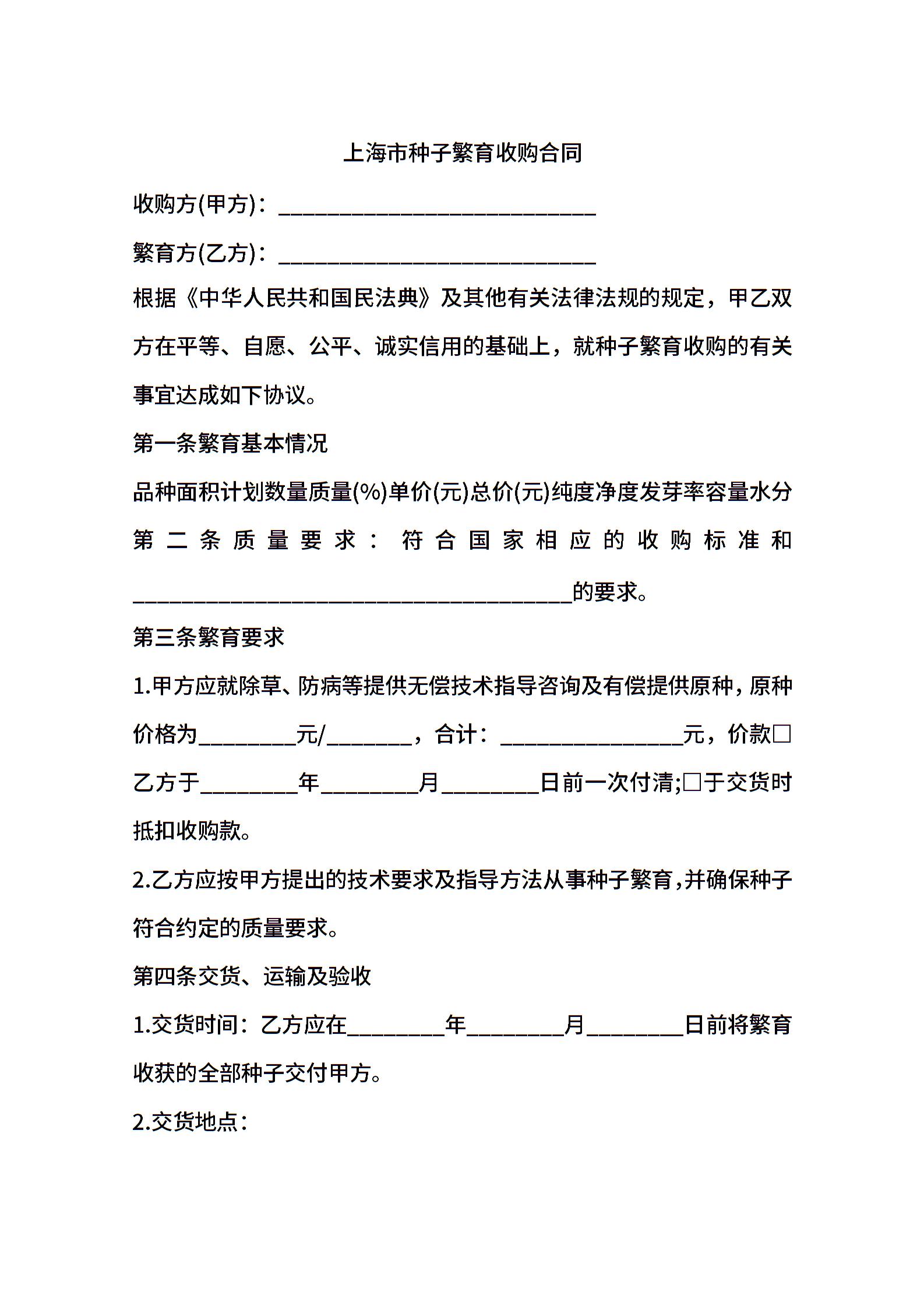 上海市种子繁育收购合同.doc