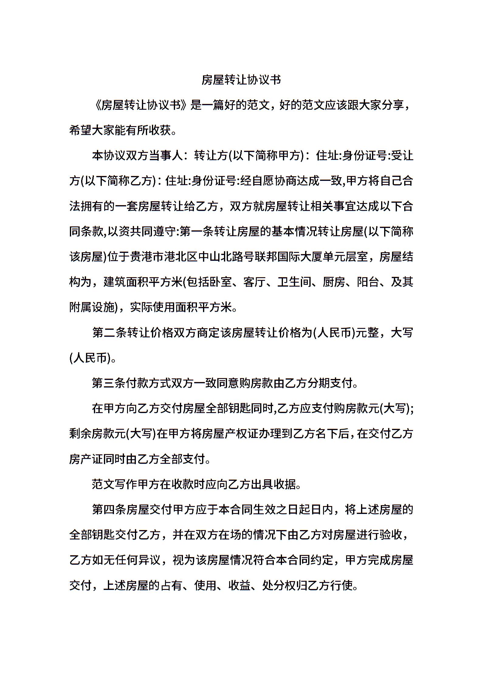当前位置:量子办公 > 合同模板 > 转让合同 >