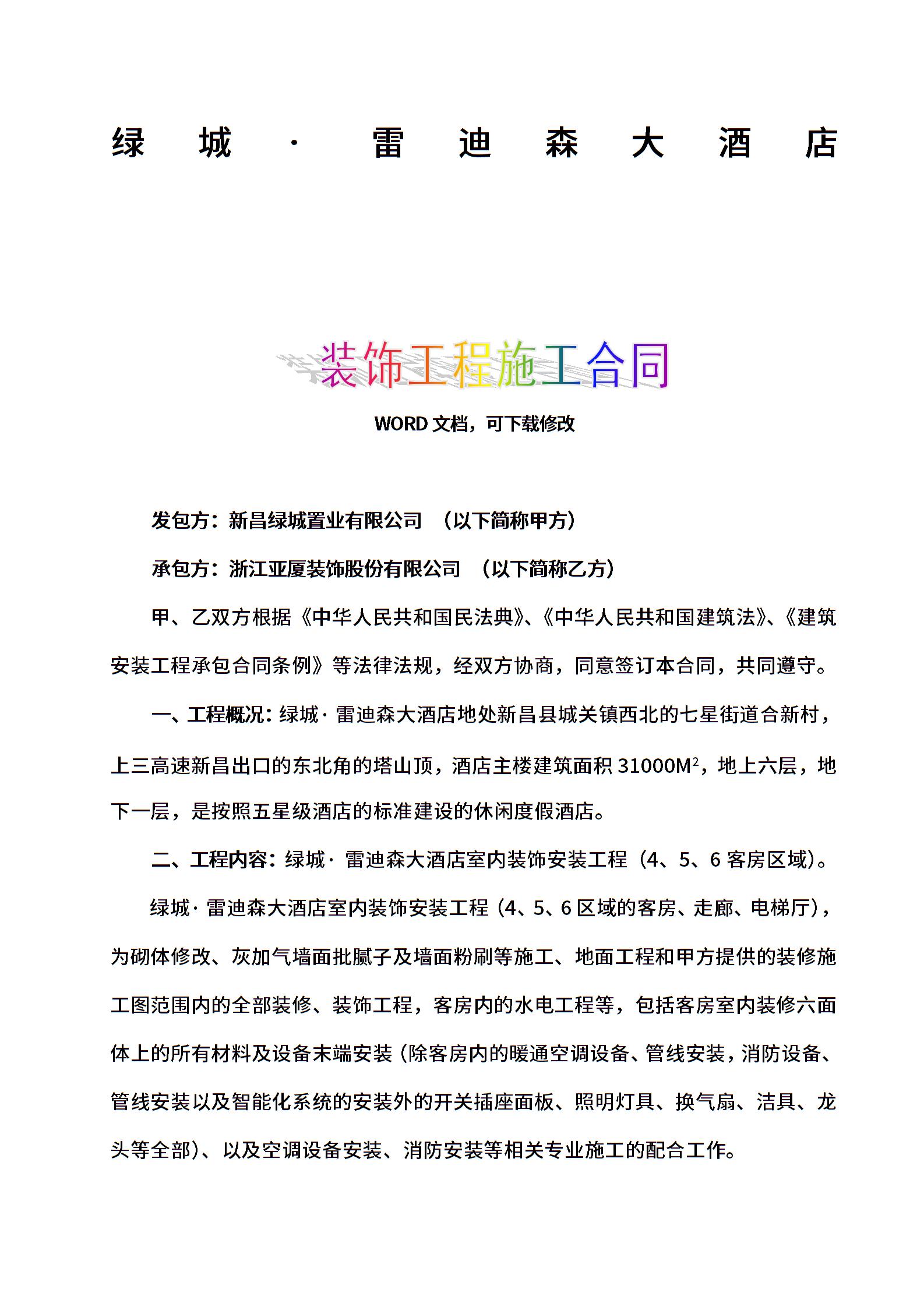【精品酒店管理】星级酒店客房精装修施工合同(6层装修).doc
