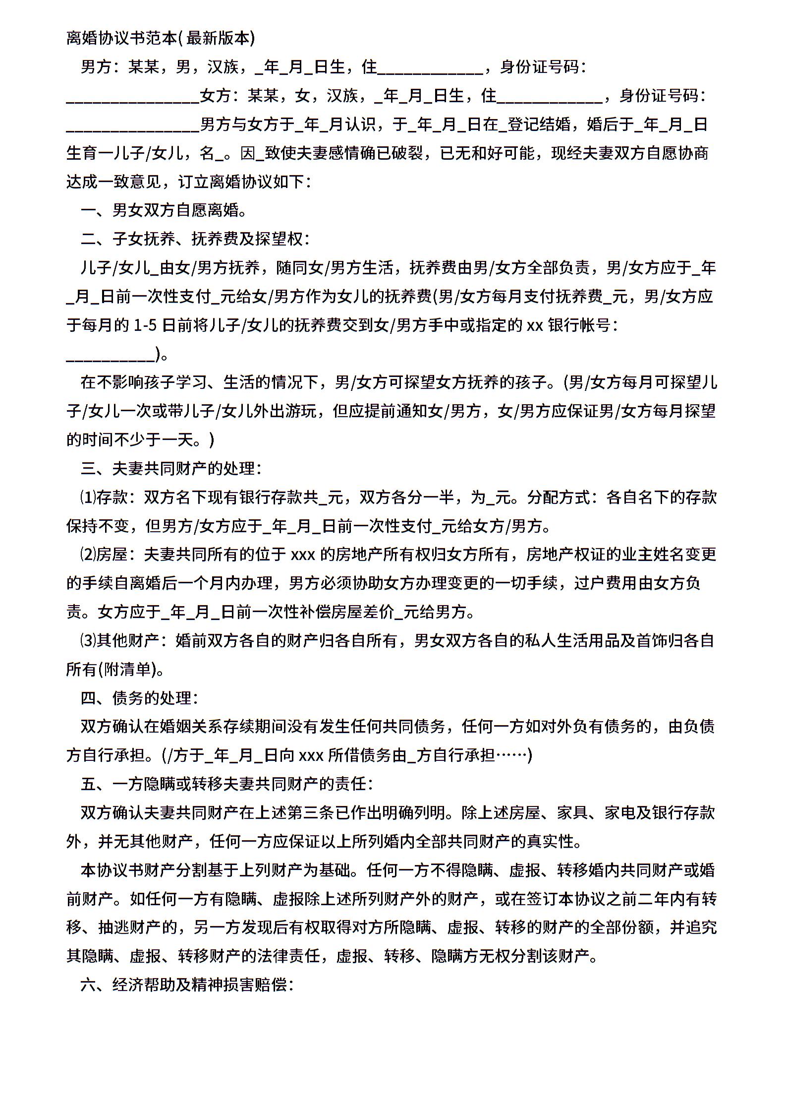 当前位置:量子办公 > 合同模板 > 离婚协议 >