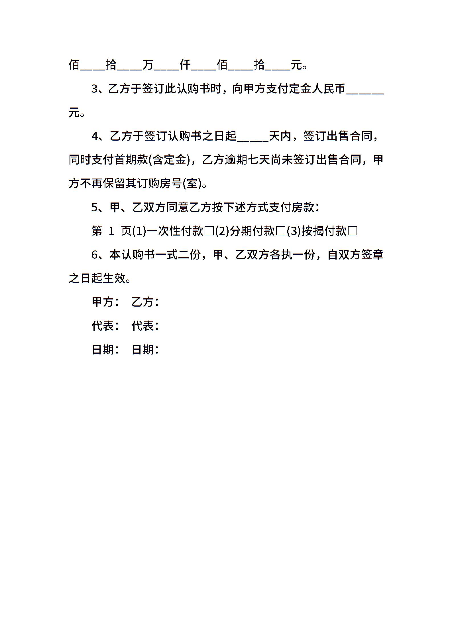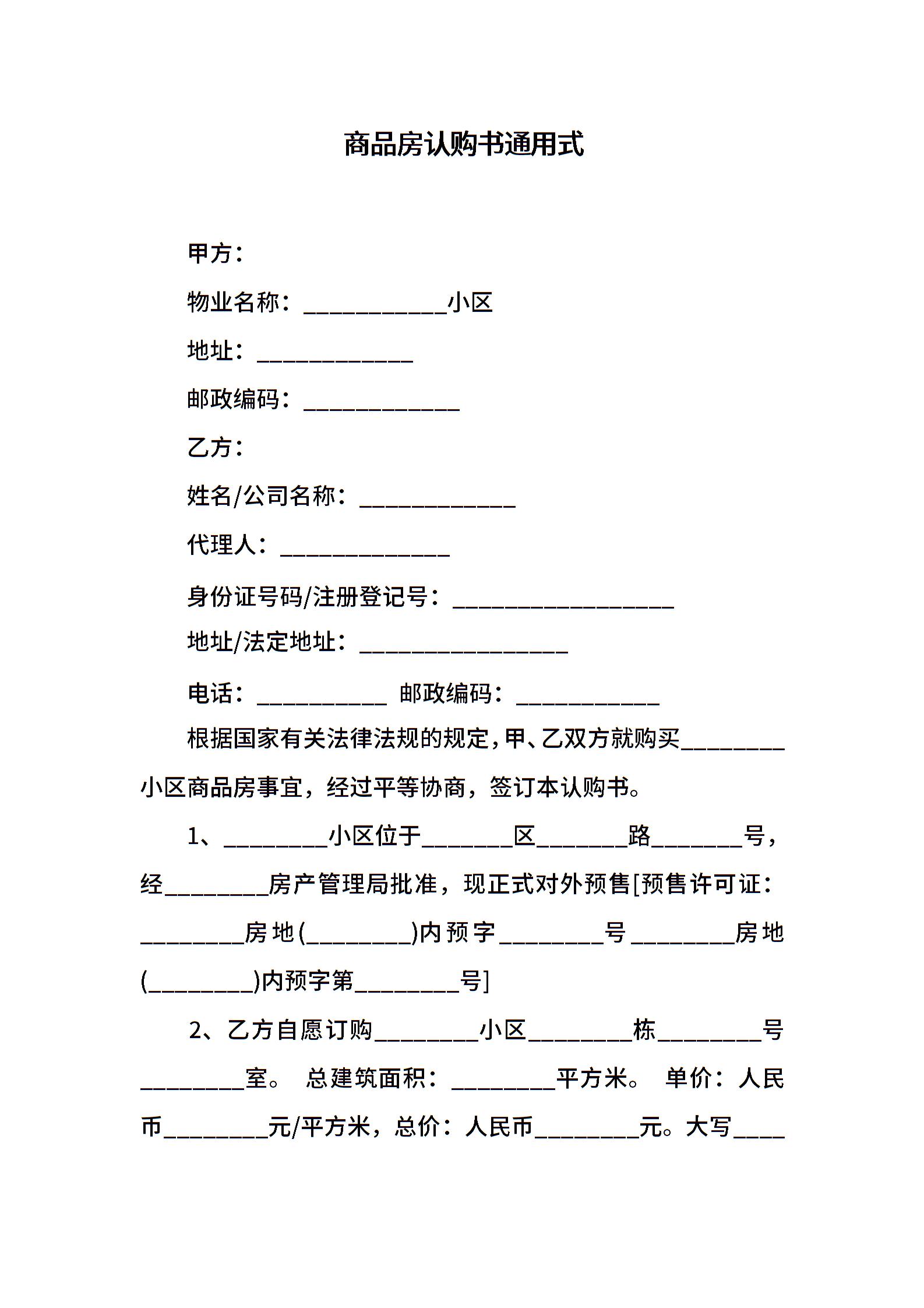 商品房认购书通用式