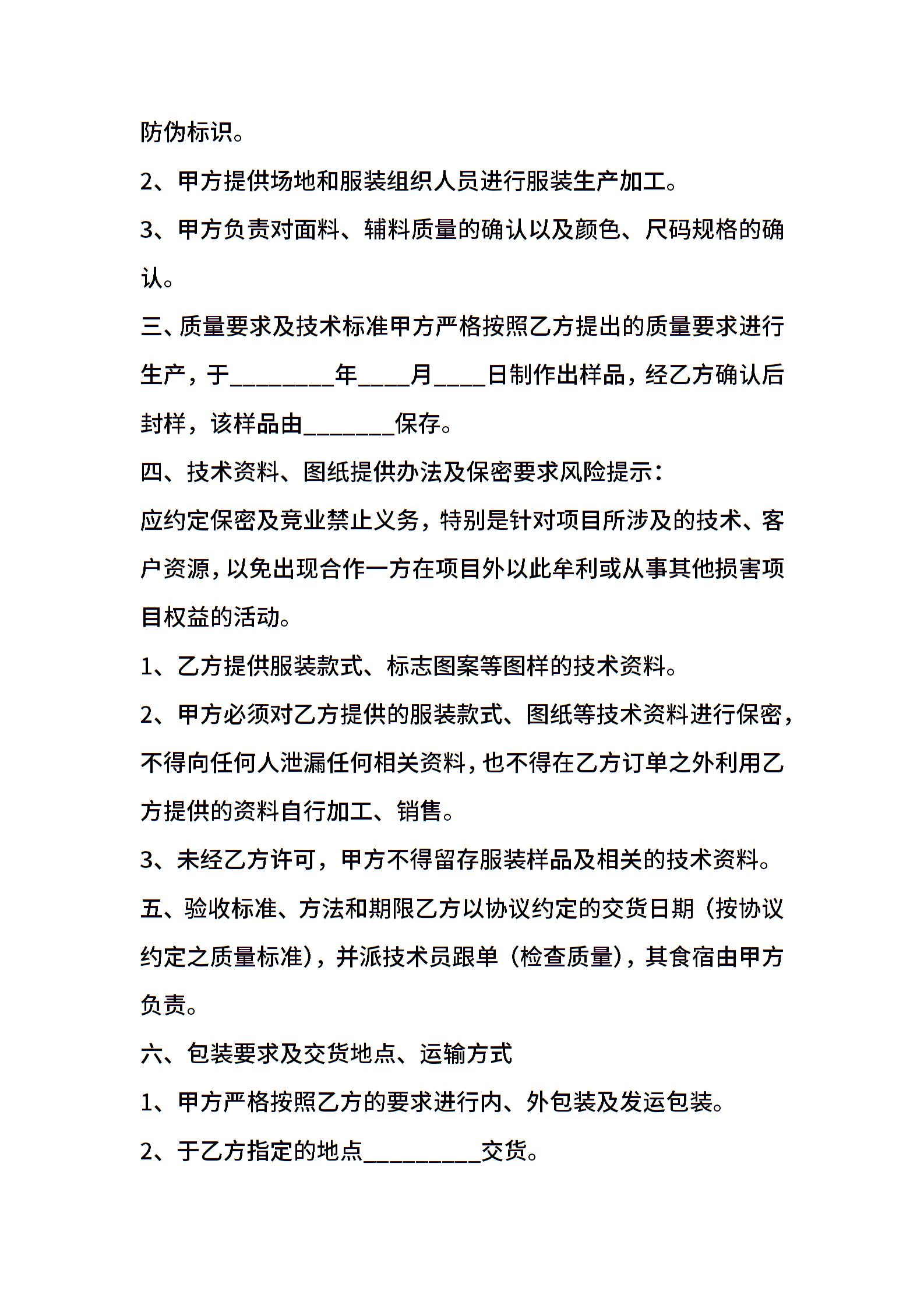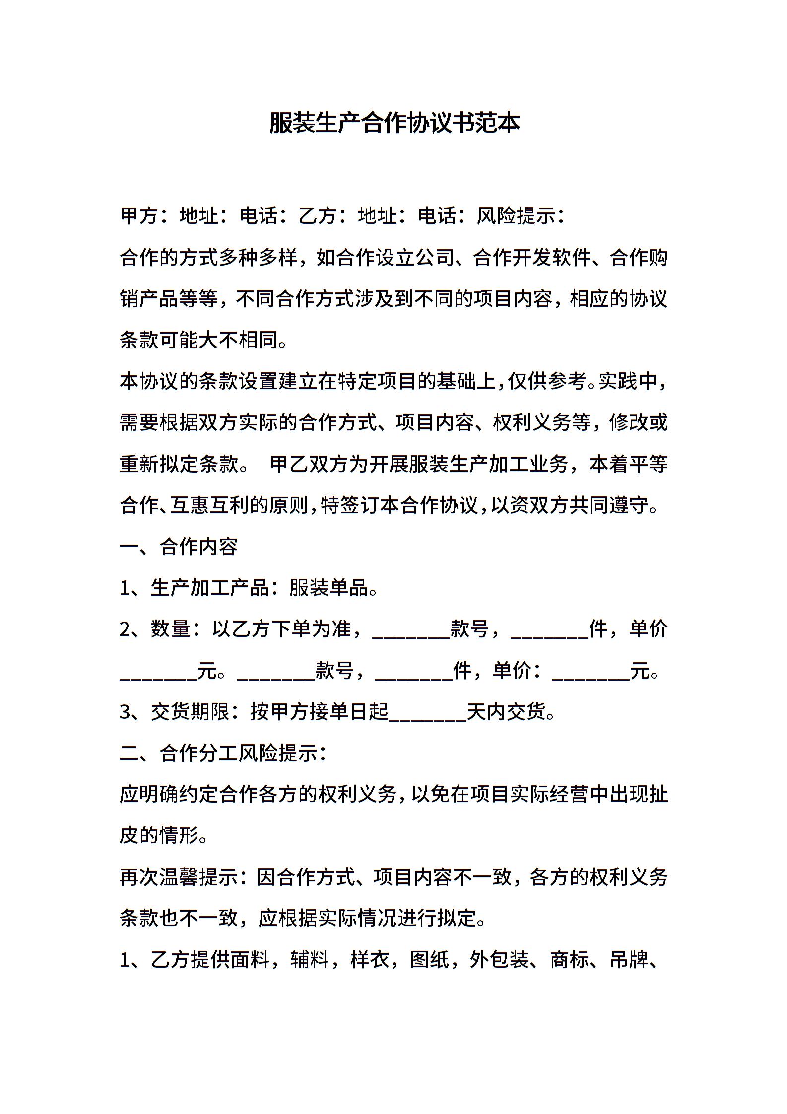 服装生产合作协议书范本