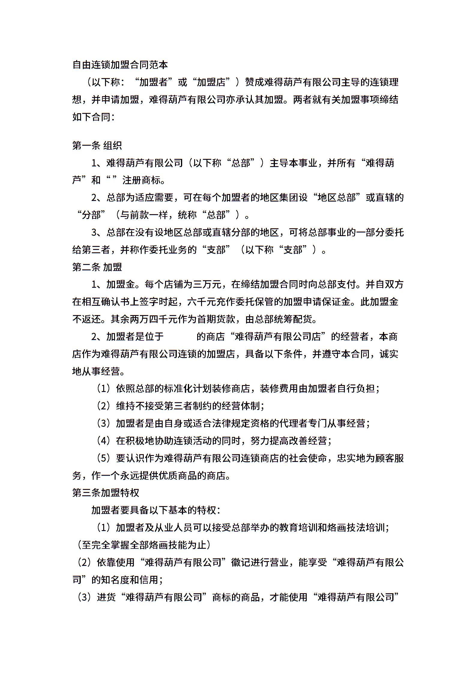 【2017年最新合同模板】自由连锁加盟合同范本.doc