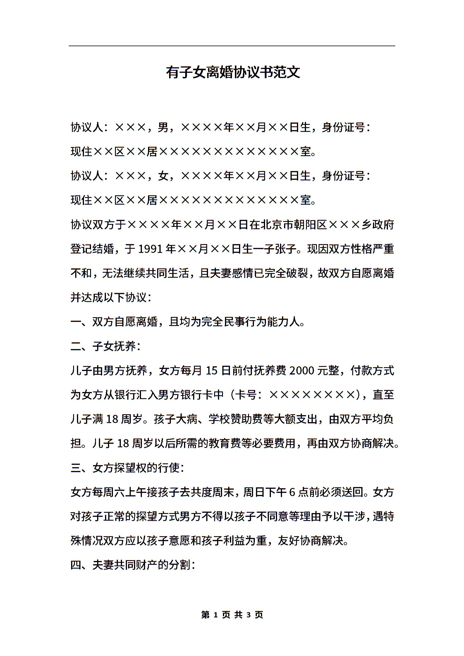 当前位置:量子办公 > 合同模板 > 离婚协议 >