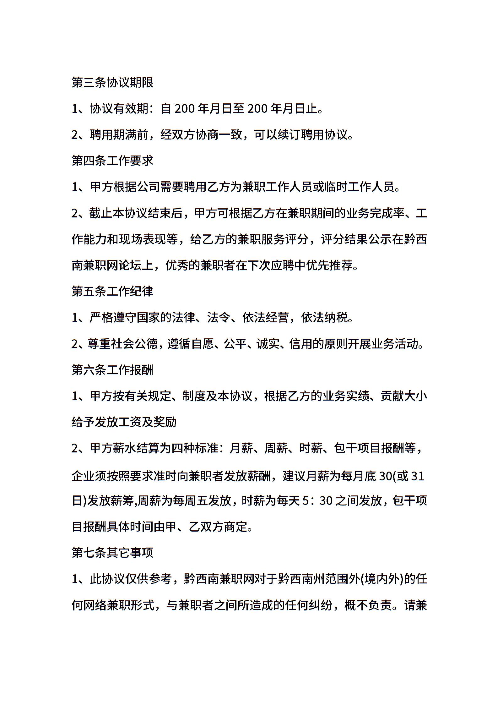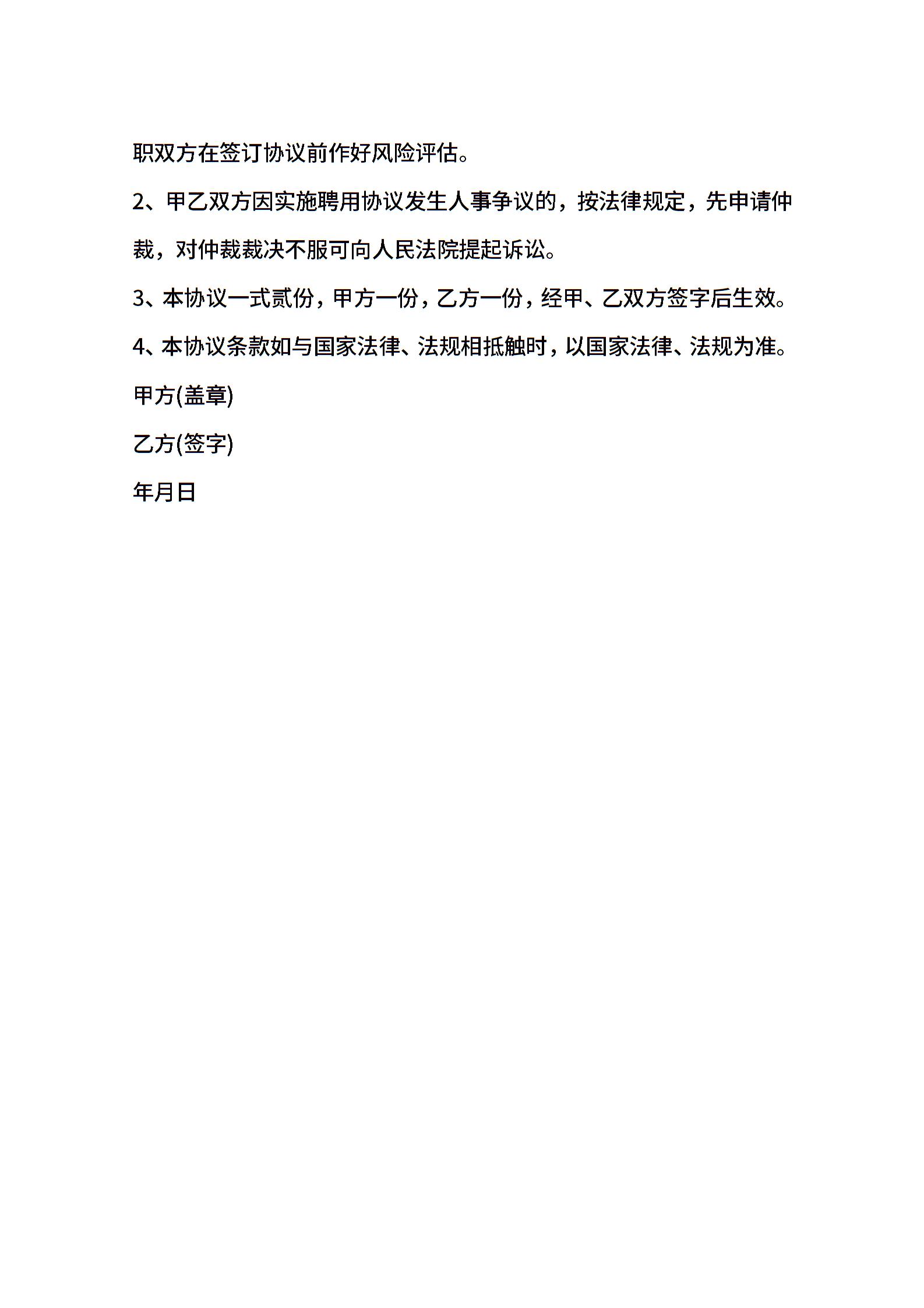 • 分类 聘用合同