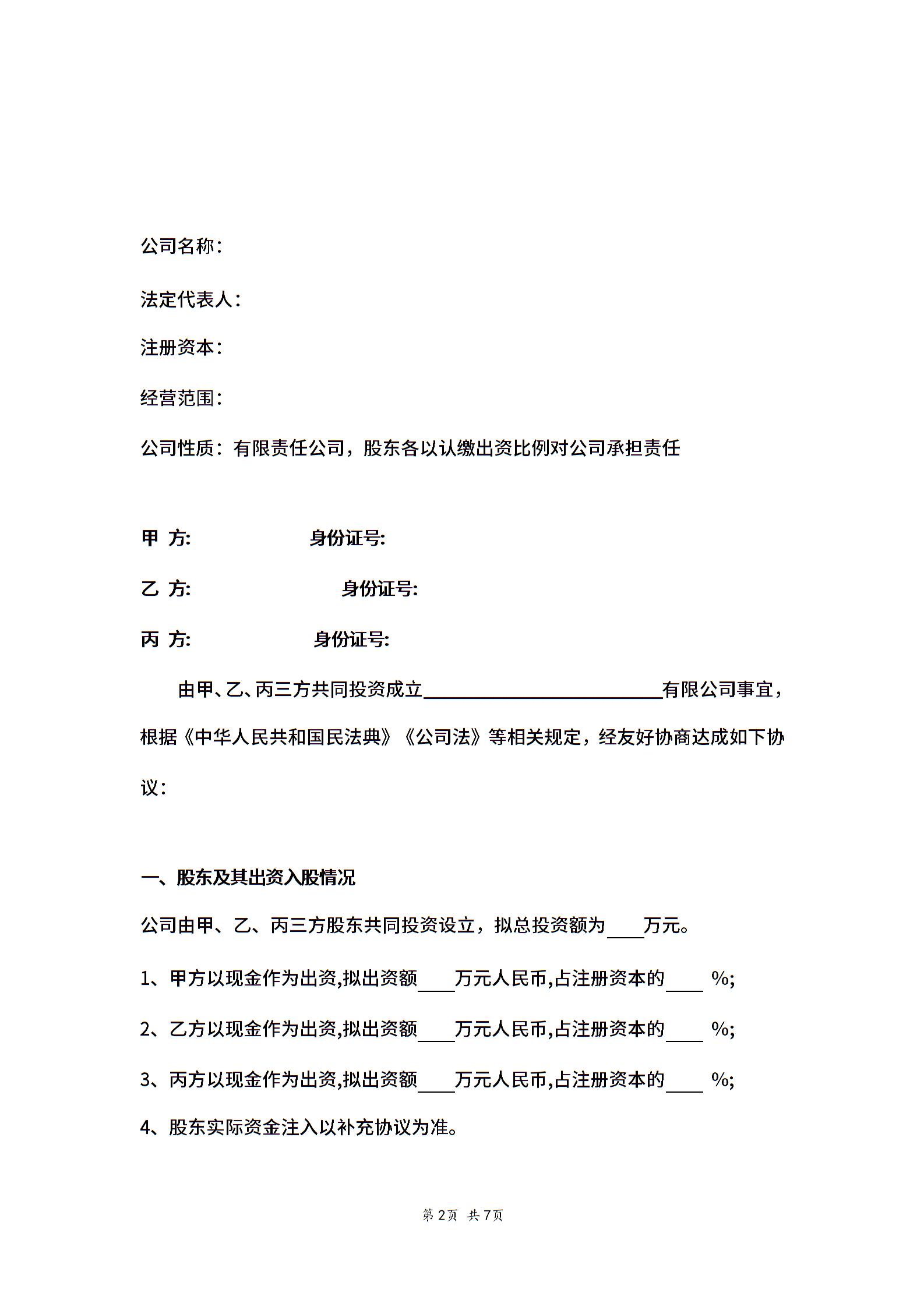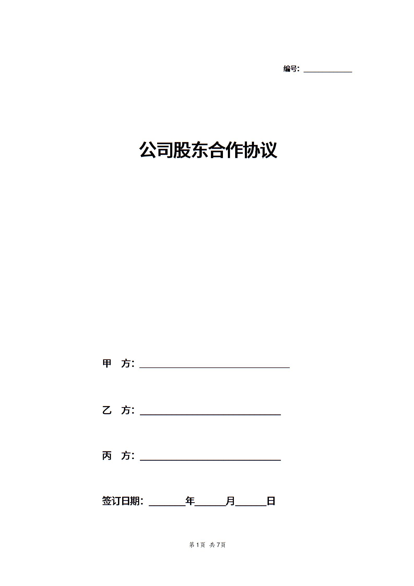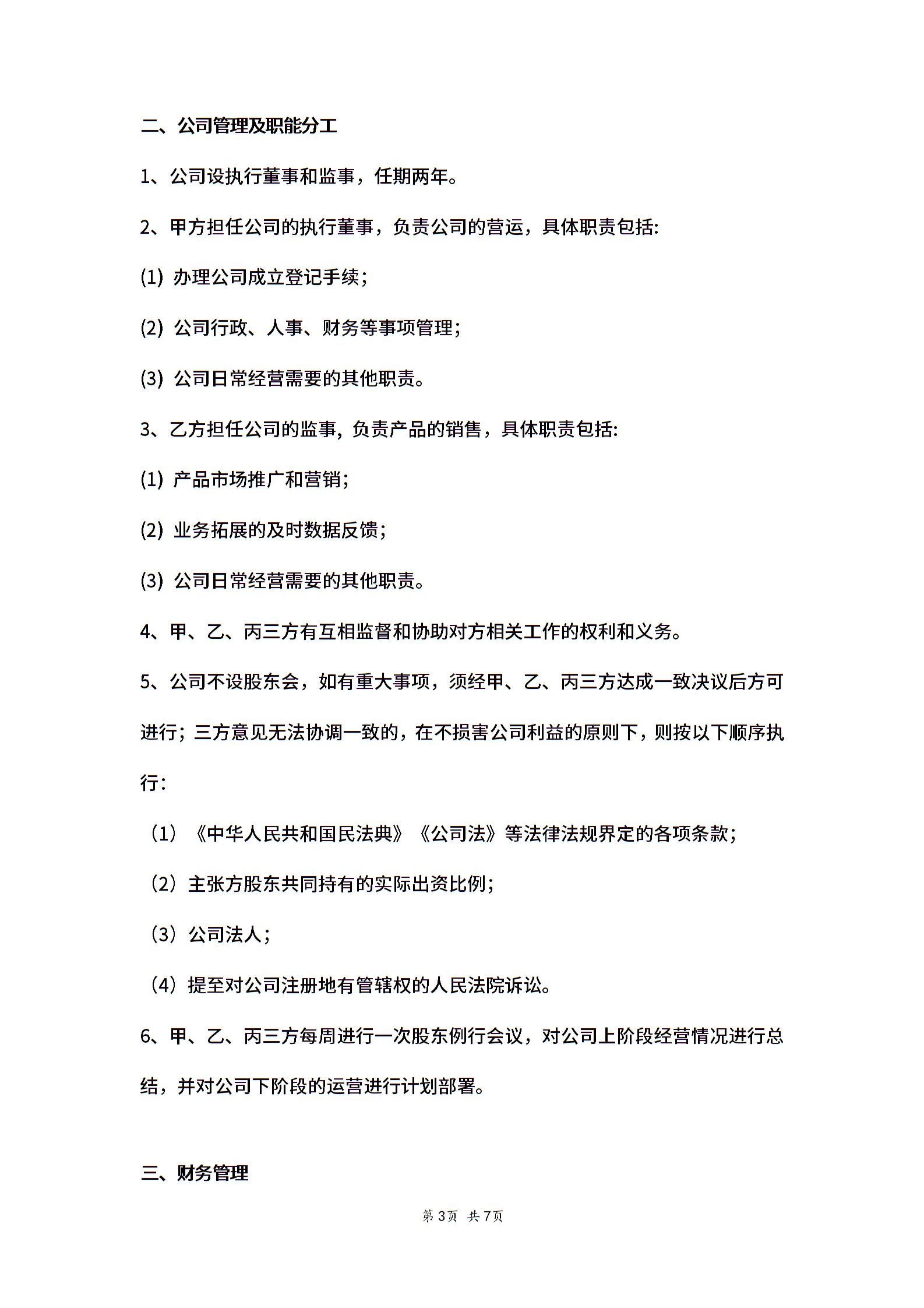 公司股东合作协议书模板(三方共同投资设立有限公司).doc