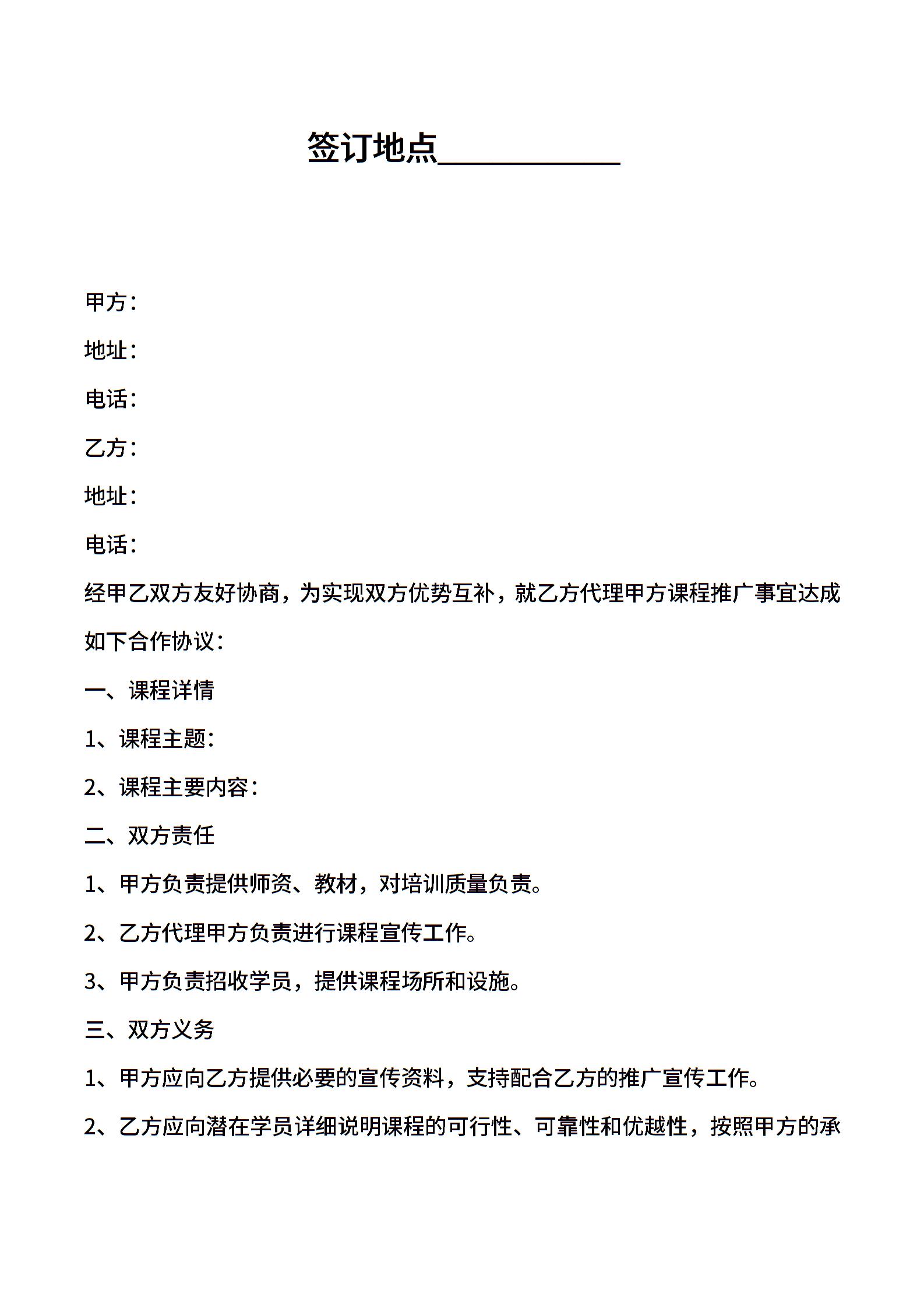 2018代理课程合作协议范本最新版.doc