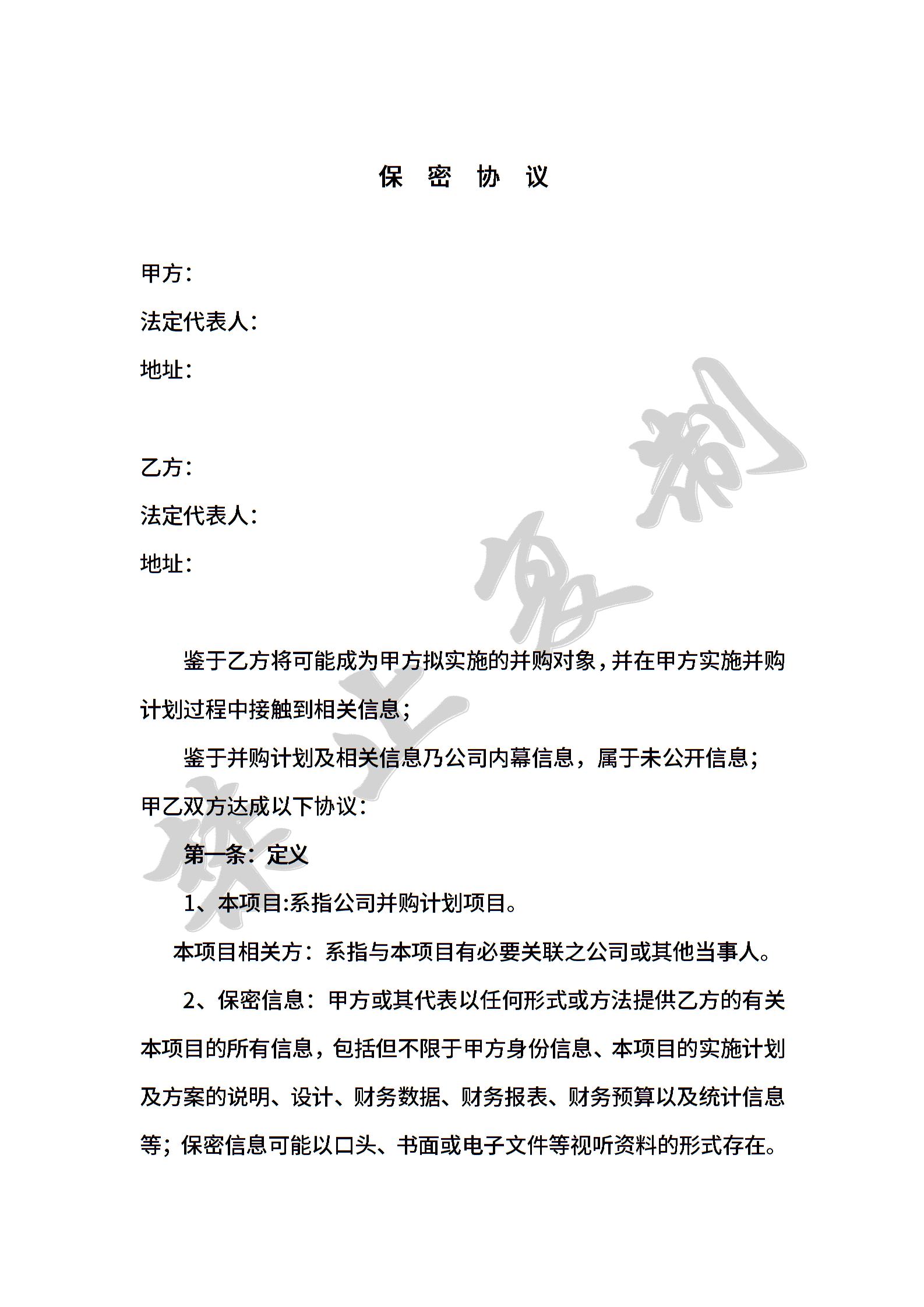 • 分类 保密协议