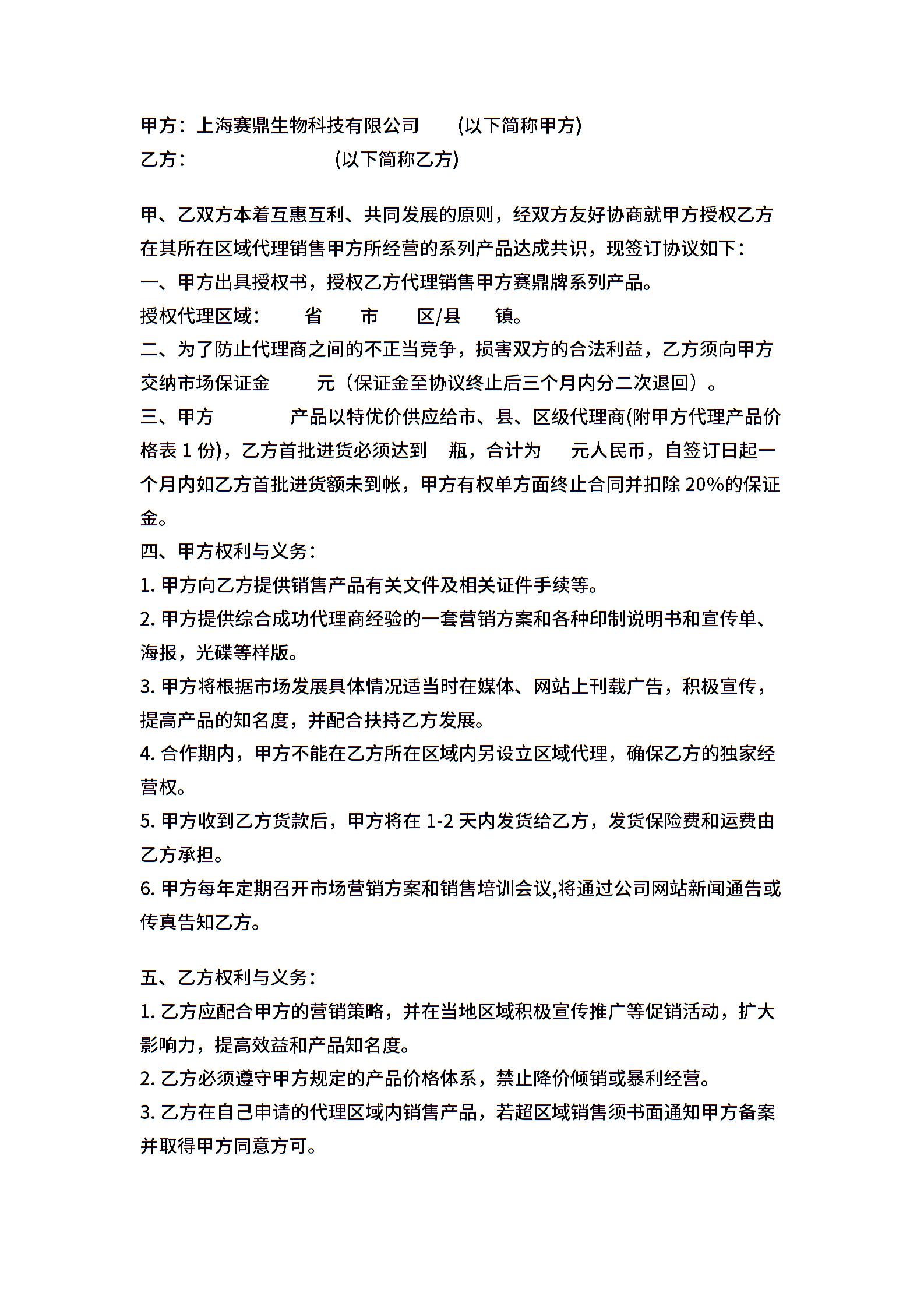 【2017年最新合同模板】上海赛鼎生物加盟合作协议书.doc